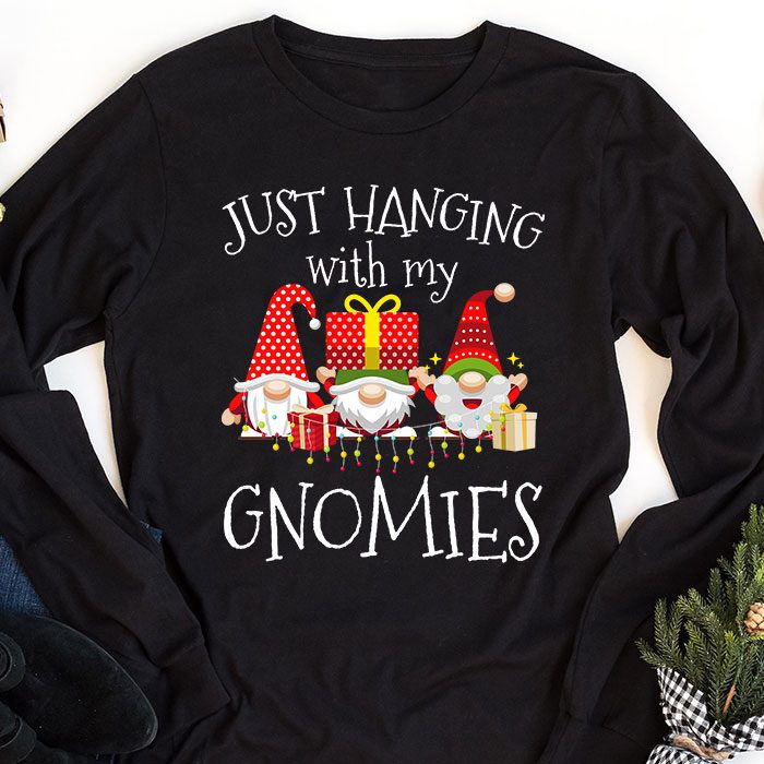 Just Hanging With My Gnomies Pajama Cute Gnome Christmas Longsleeve Tee