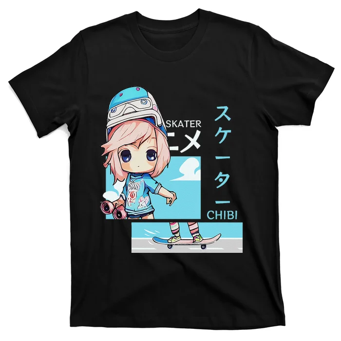 Kawaii Chibi Skater Skateboard Japanese Aesthetic Skating T-Shirt