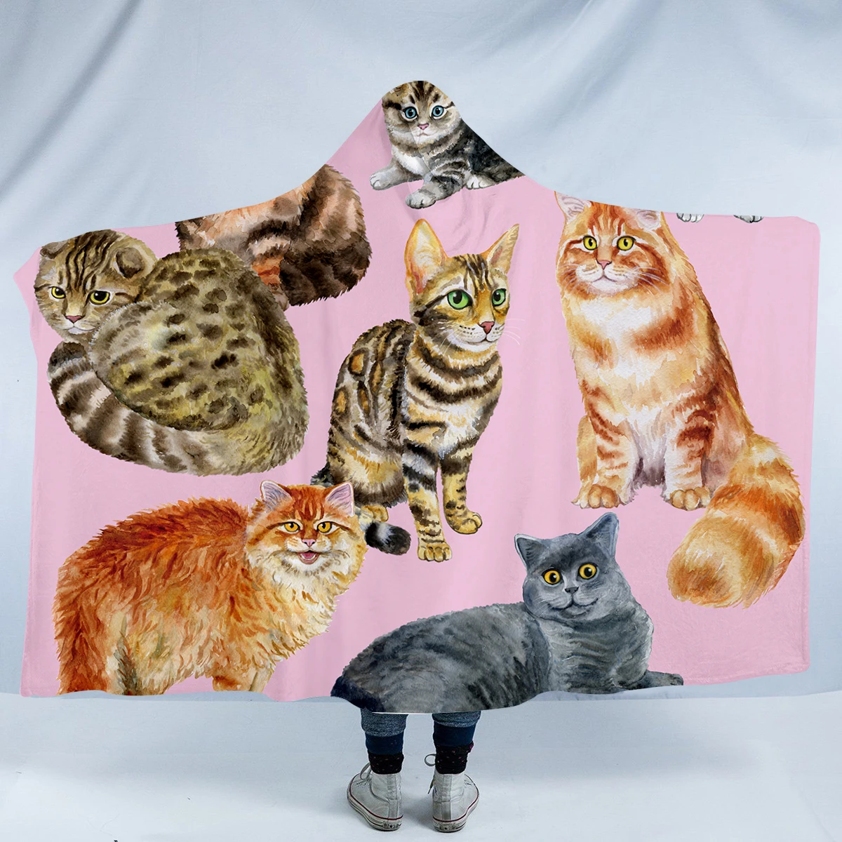 Kitties Pink SW0033 Hooded Blanket Cloak Blanket