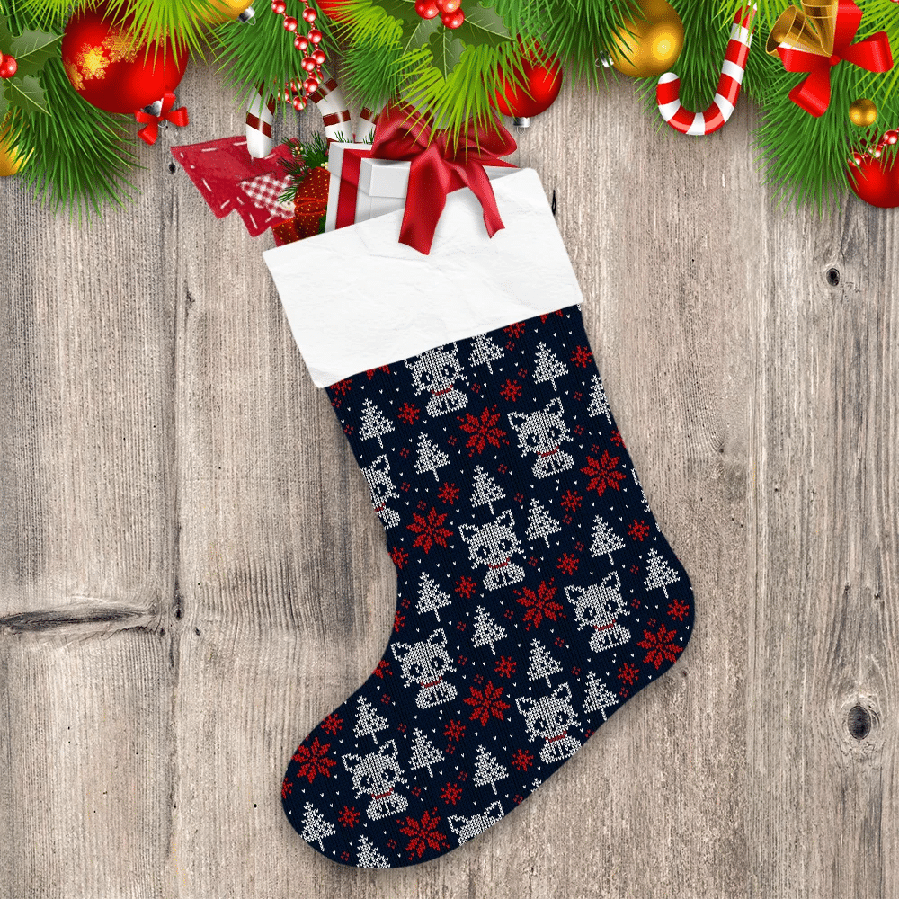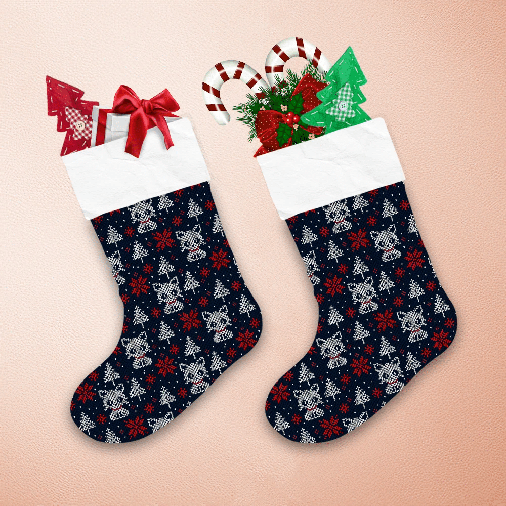 Knitted Christmas And New Year In Cats Christmas Stocking
