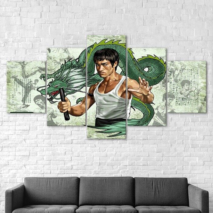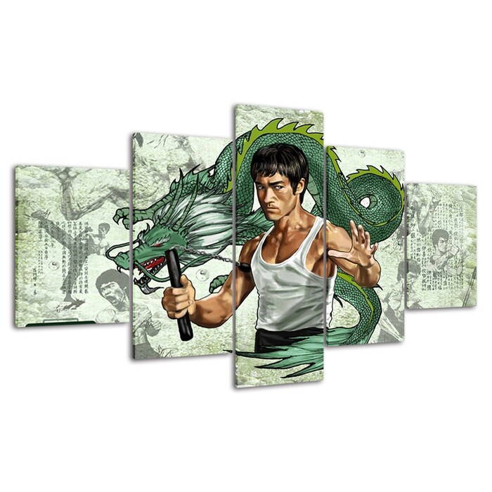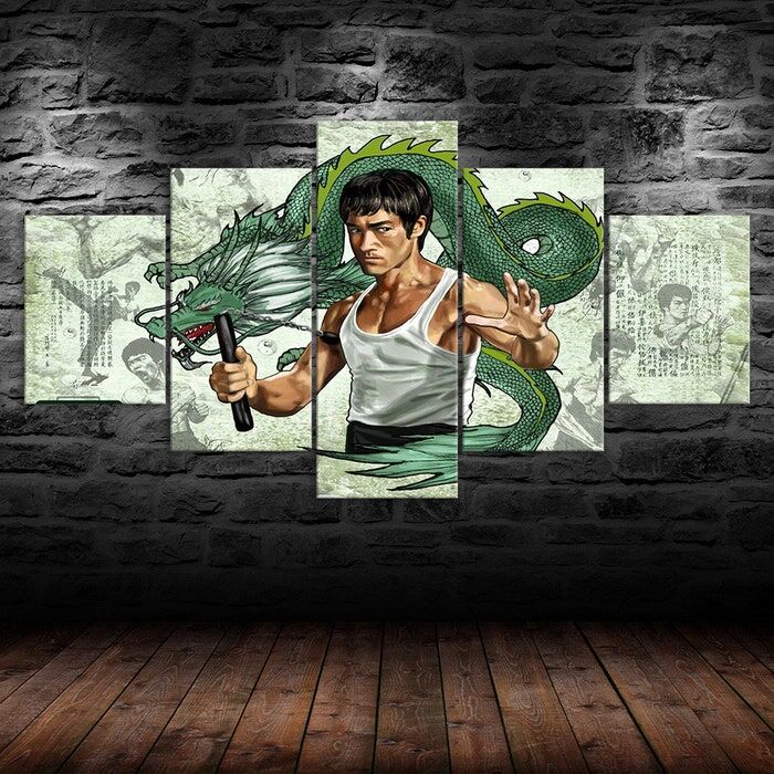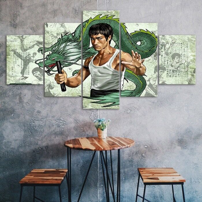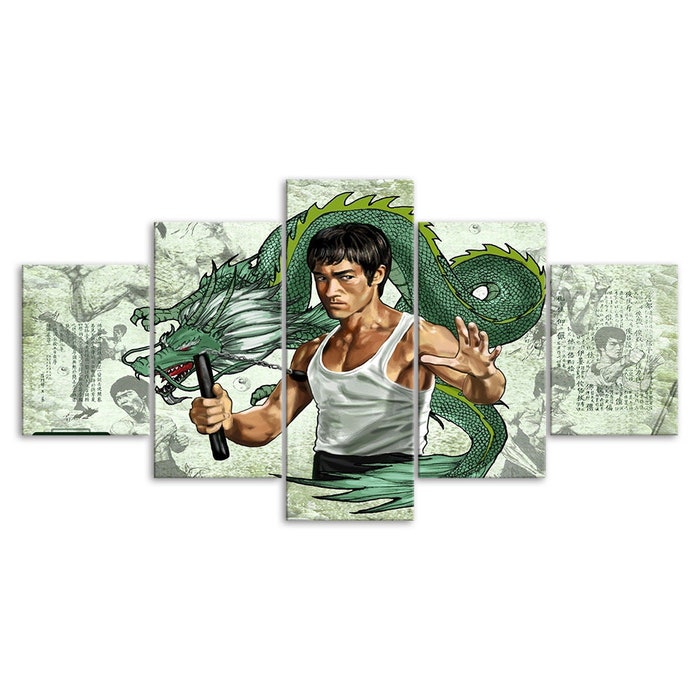 Kung Fu Master Martial Arts Motivation Vintage Dragon 5 Piece Five Panel Wall Canvas Print Modern Poster Wall Art Decor