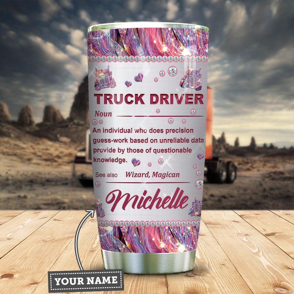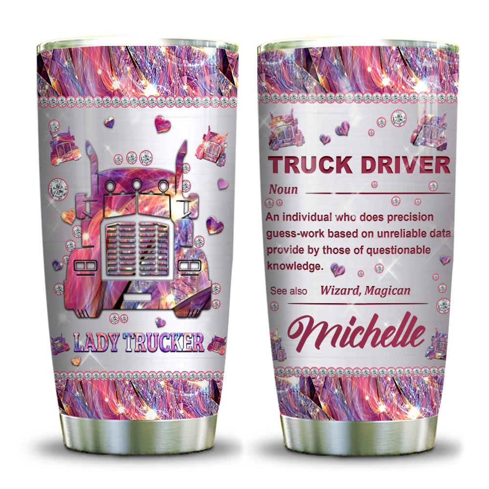 Lady Trucker Pink Metal Style Personalized Stainless Steel Tumbler