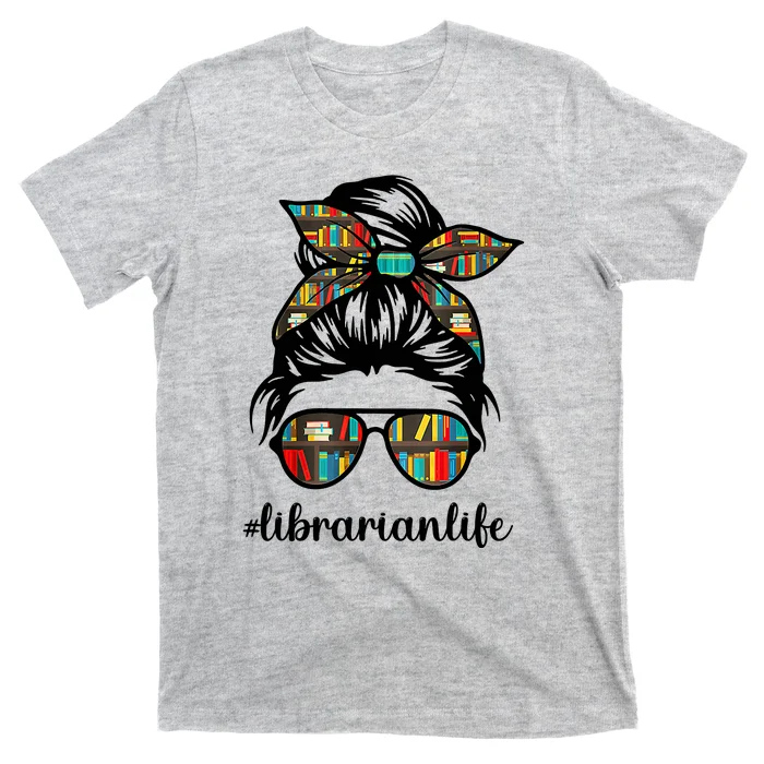 Librarian Teacher Messy Bun Life Book Library Back To School T-Shirt