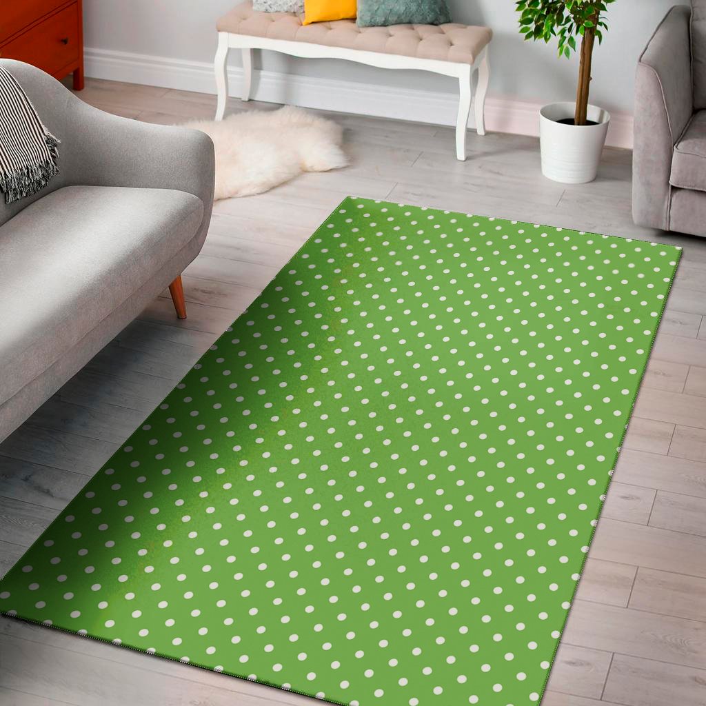 Lime Green And White Polka Dot Print Area Rug Floor Decor