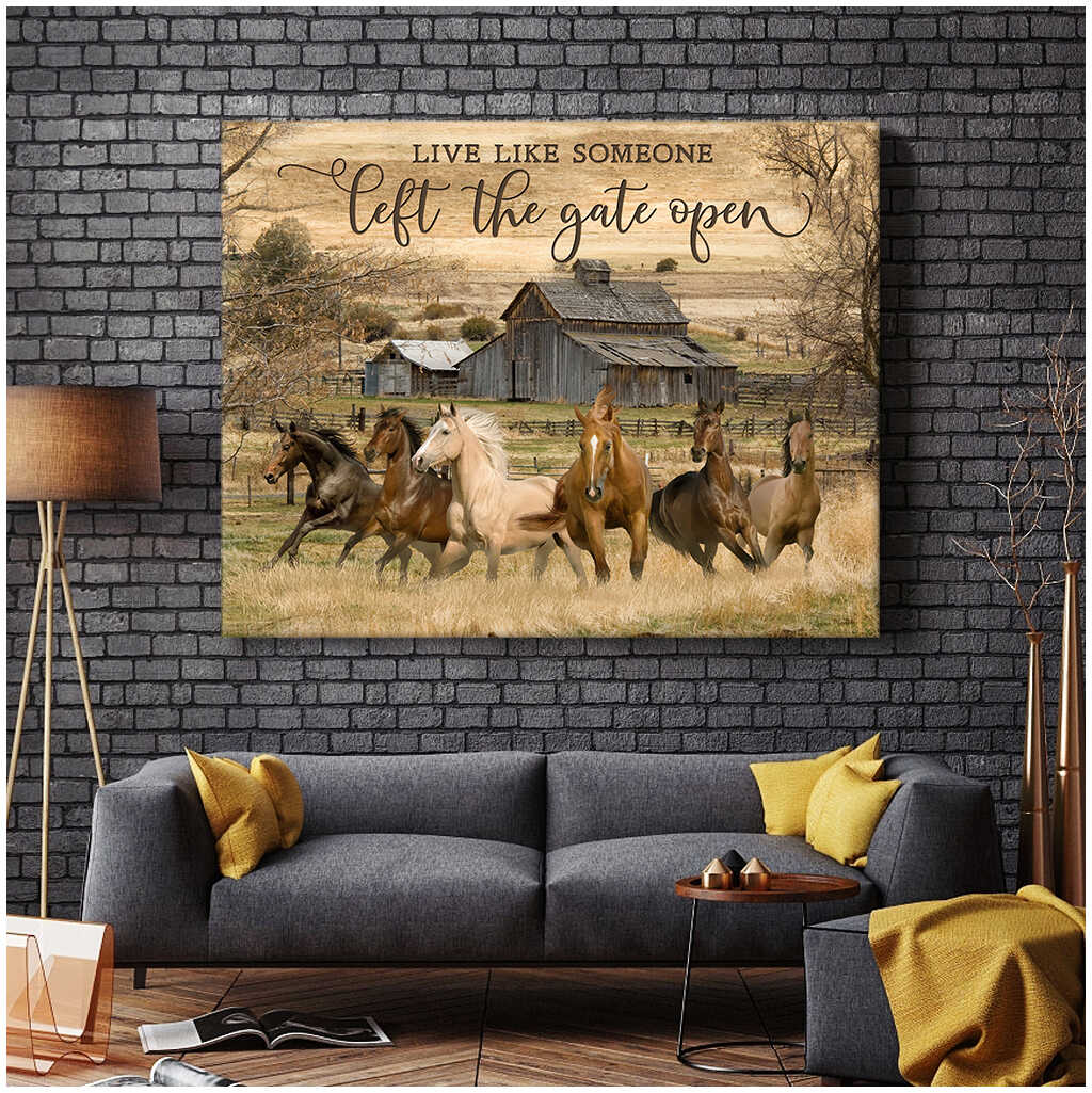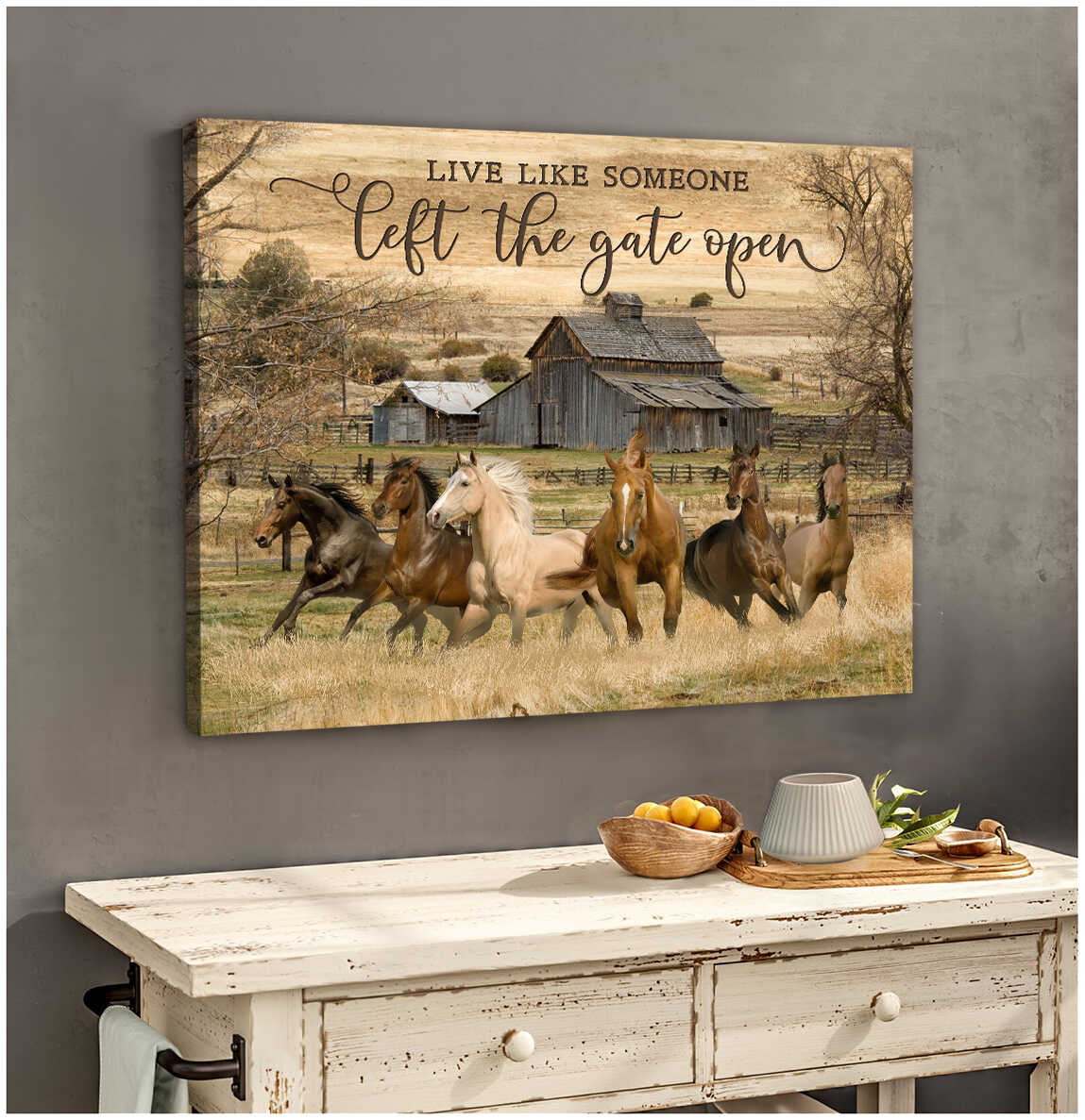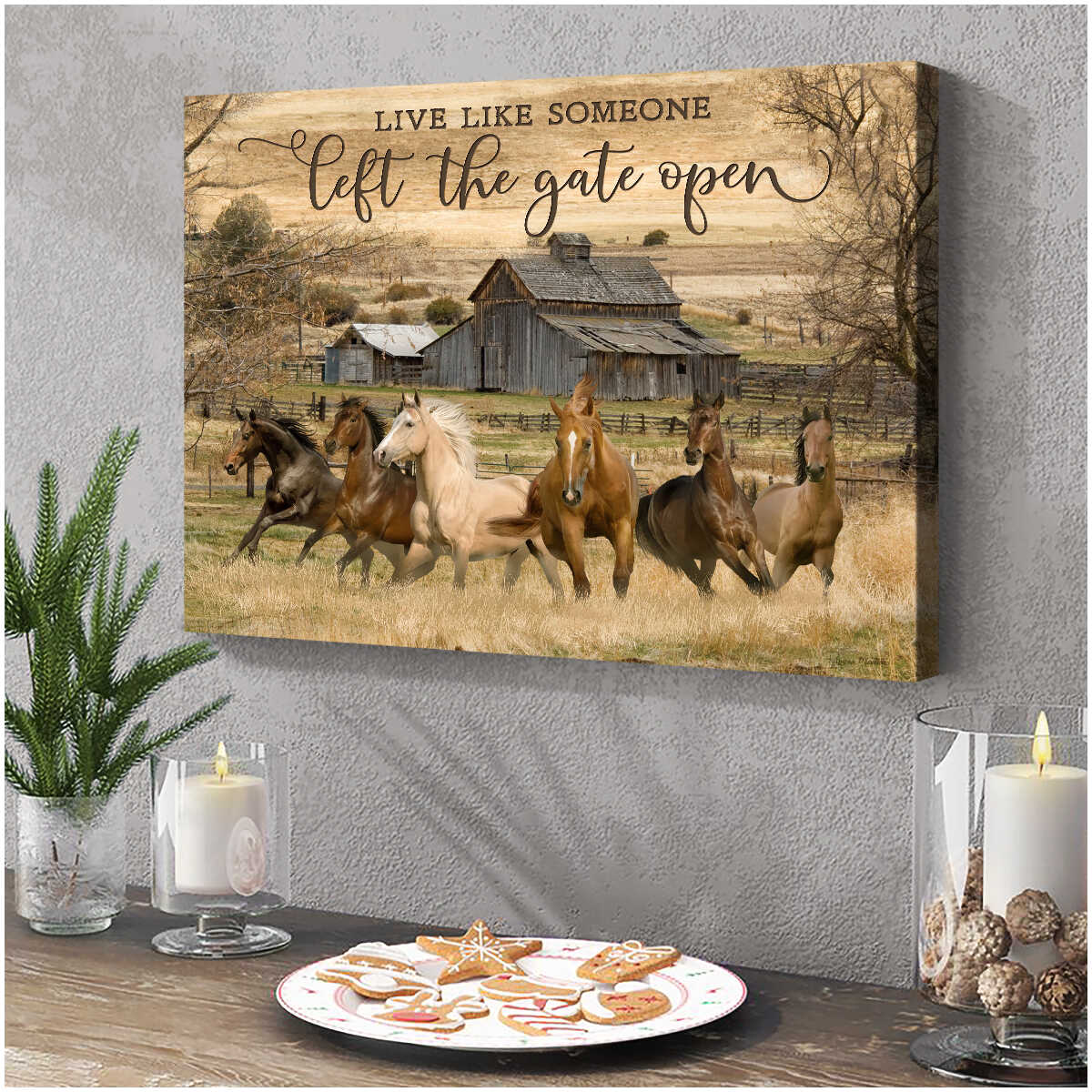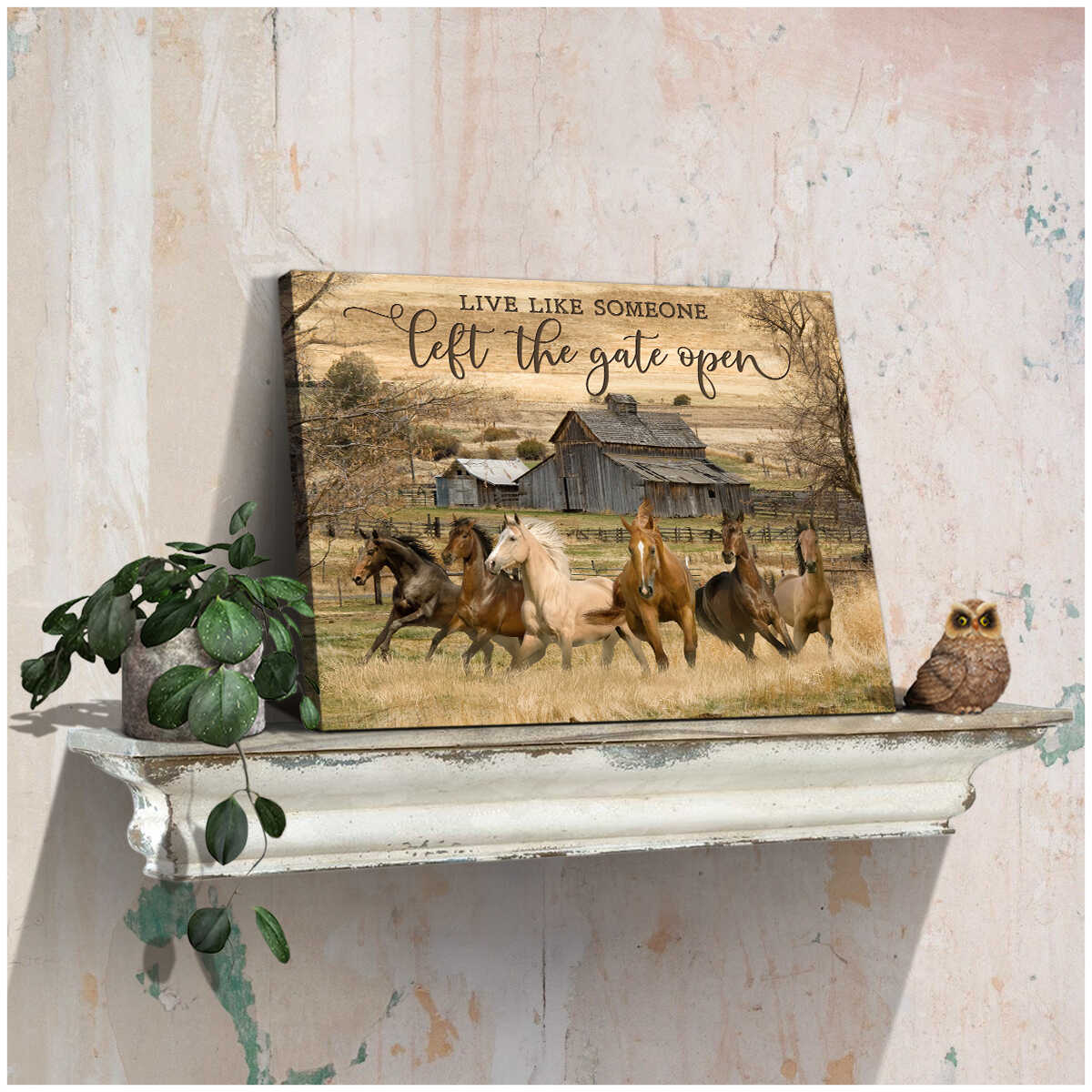 Live Like Someone Left The Gate Open Horses Canvas Prints Wall Art Decor