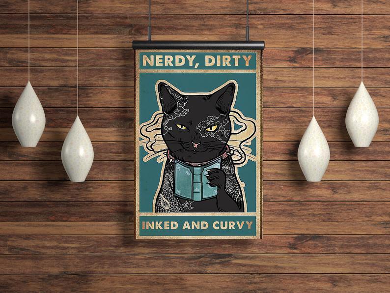 Love Cat Canvas, Cat Love Book Vintage Wall Art, Nerdy Dirty Inked And Curvy Canvas, Funny Cat Lovers Gift