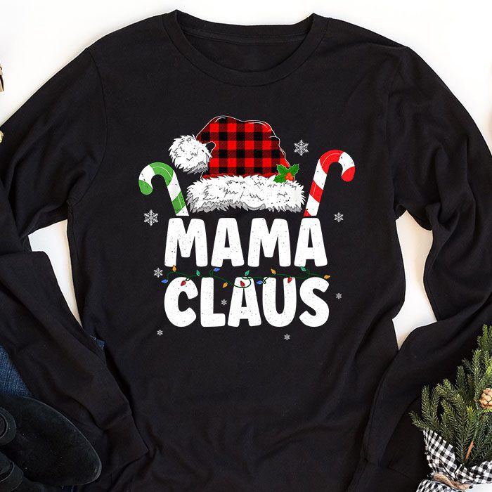 Mama Claus Shirt Christmas Lights Pajama Family Matching Longsleeve Tee
