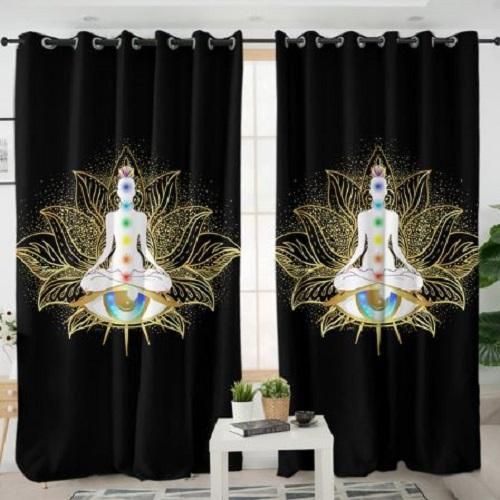 Mandala Lotus Flower Yoga Printed Window Curtain