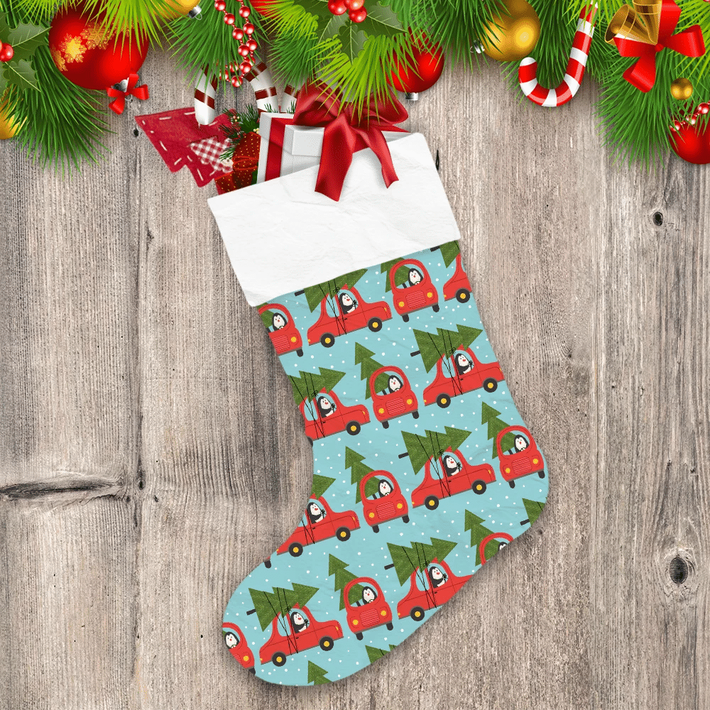 Merry Christmas And Happy New Year With Penguin In Car Christmas Stocking