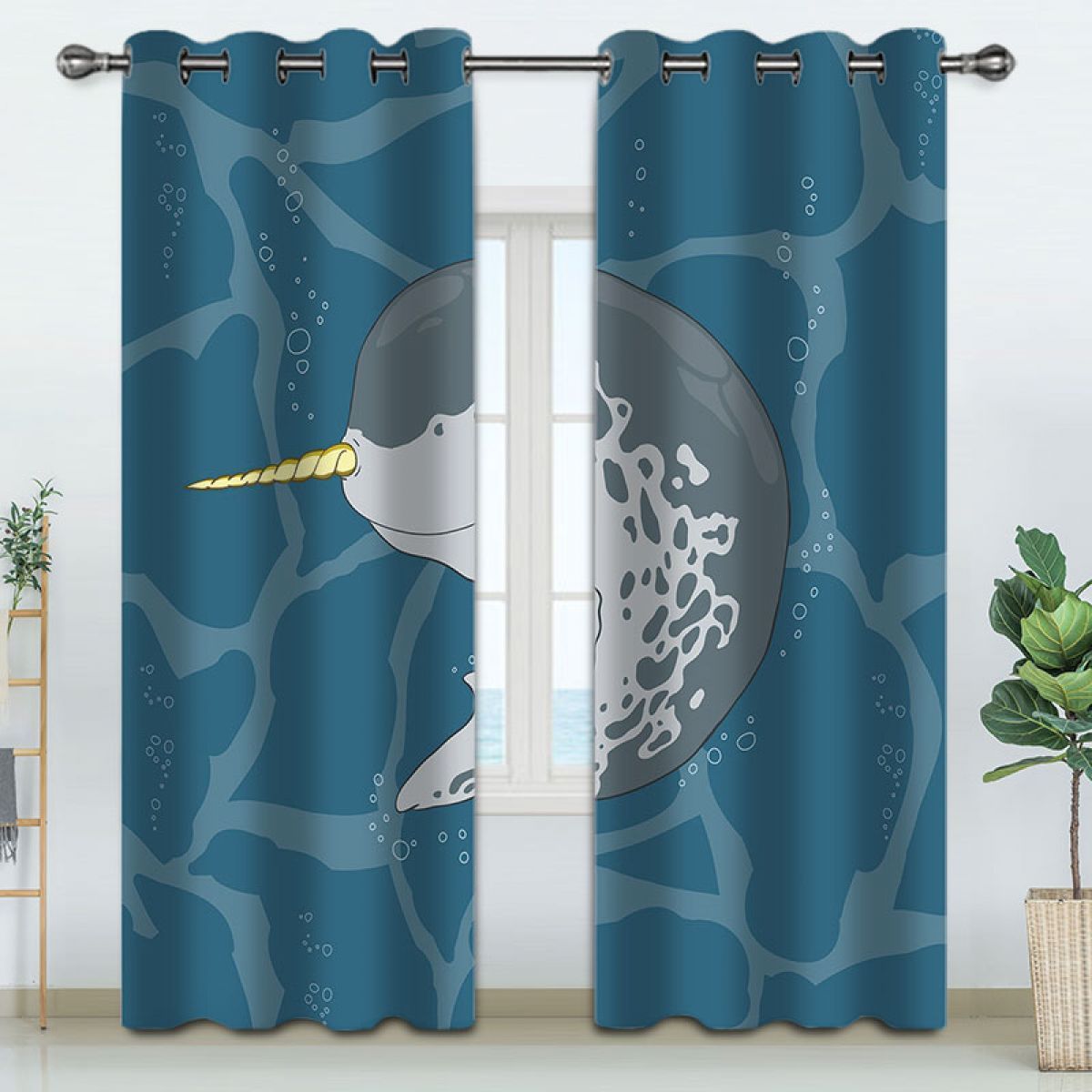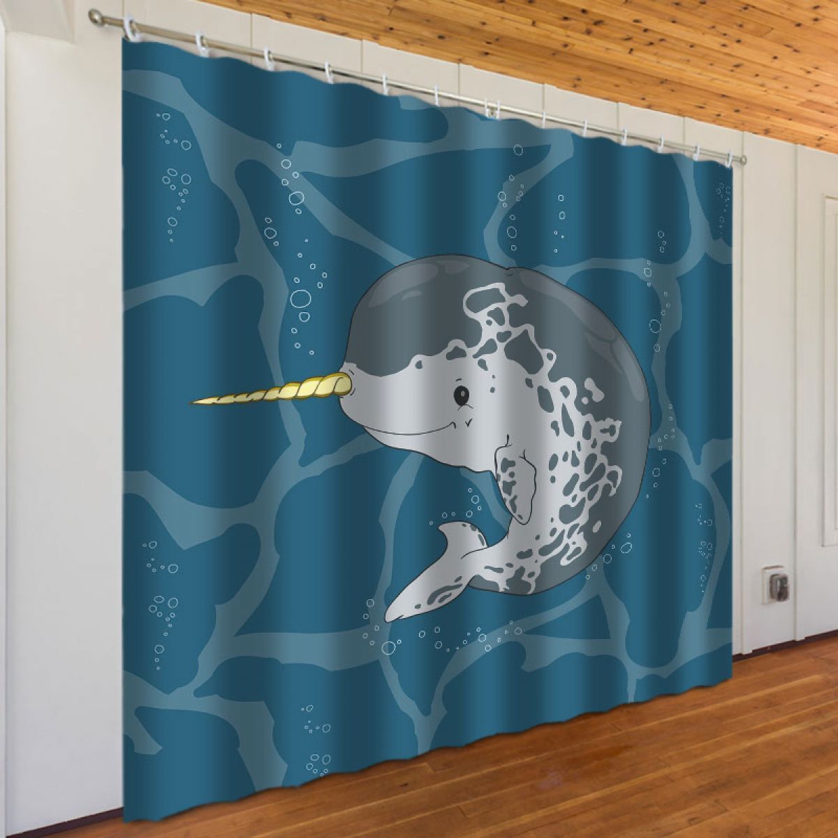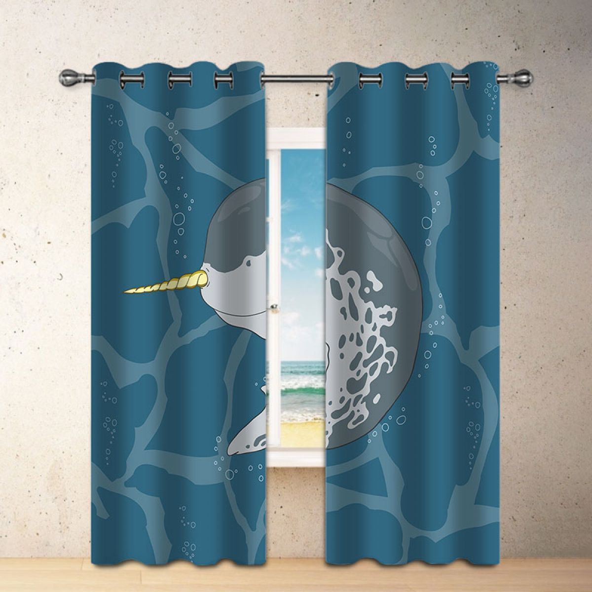Modern 3d Unicorn On The Sea Printed Window Curtain Home Decor