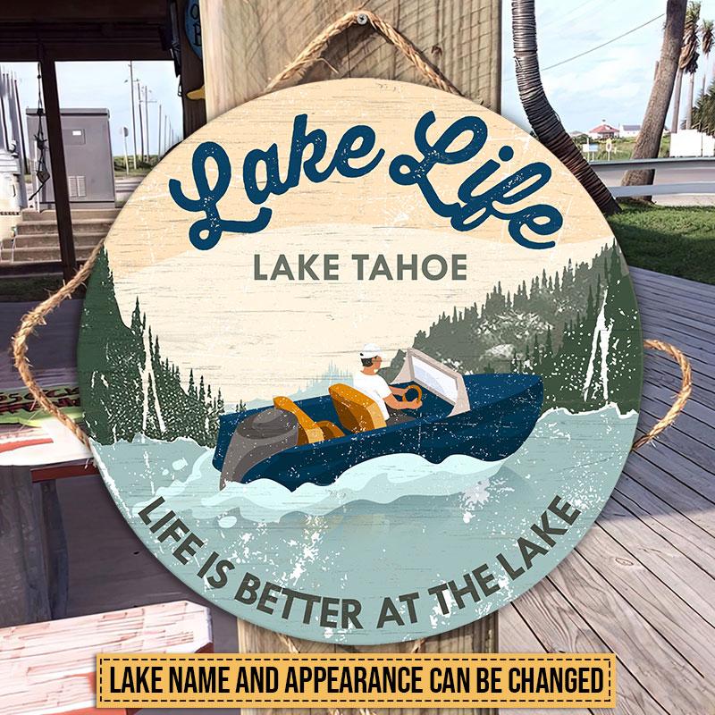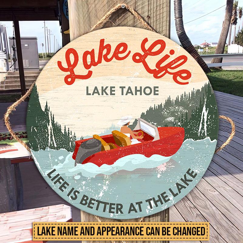 Motorboat Life Is Better At The Lake Custom Wood Circle Sign