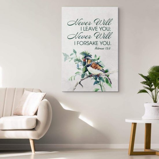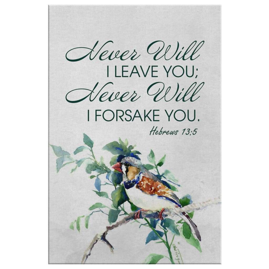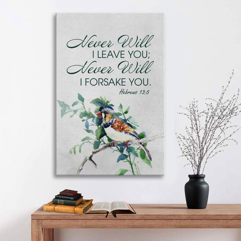 Never Will I Leave You Never Will I Forsake You Hebrews 13:5 Bible Verse Canvas Wall Art