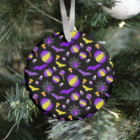 Nonbinary Pride Halloween Pattern Ornament
