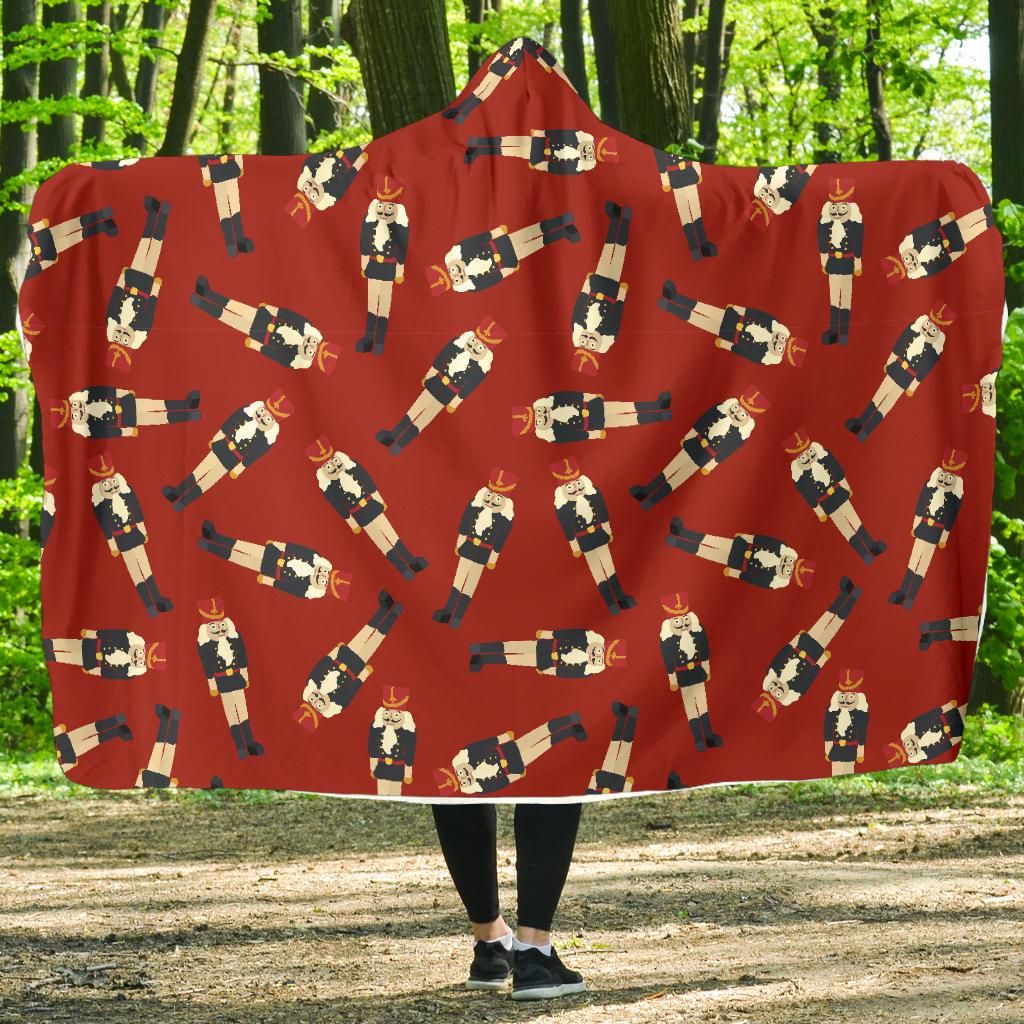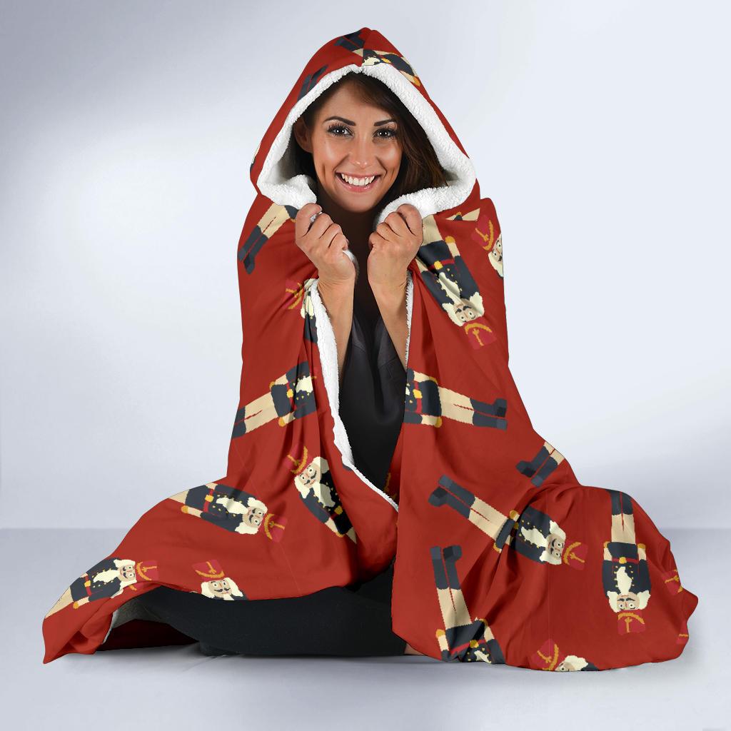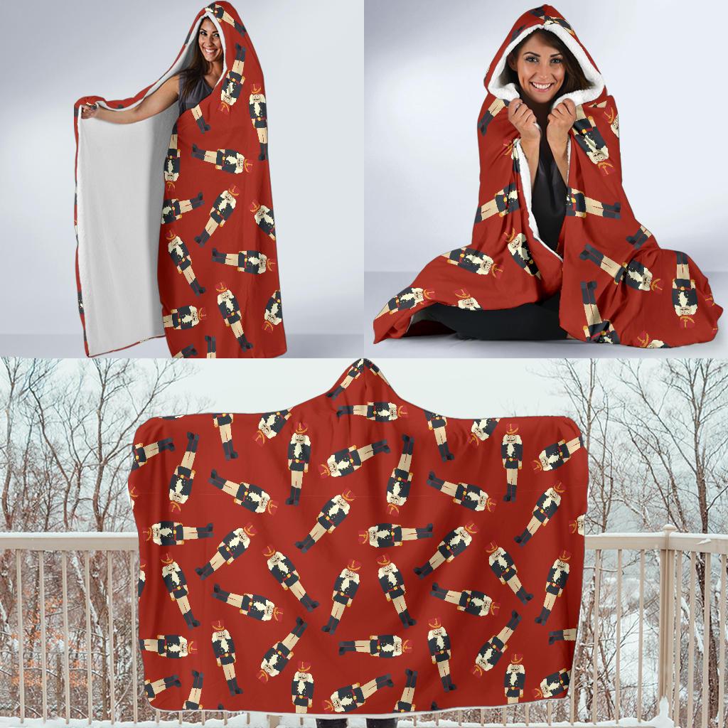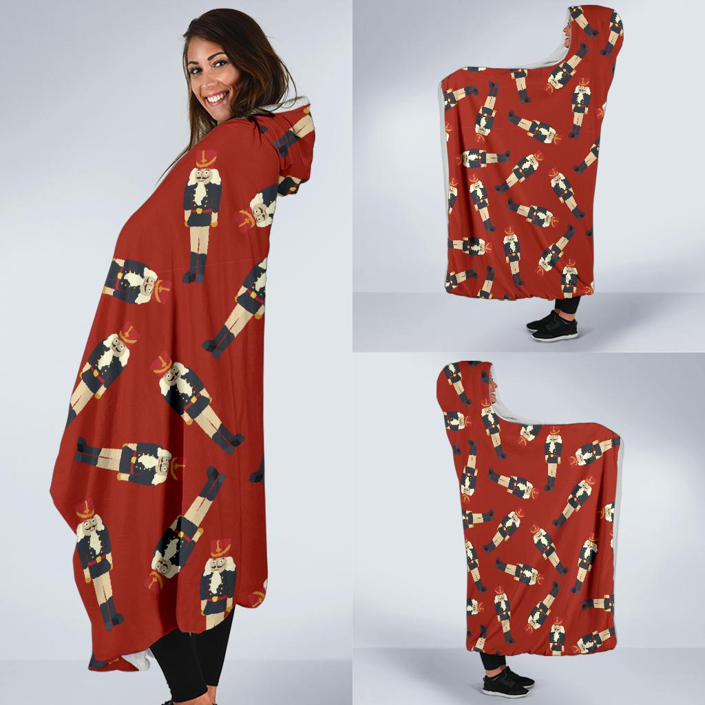 Nutcracker Red Pattern Print Hooded Blanket Cloak Blanket