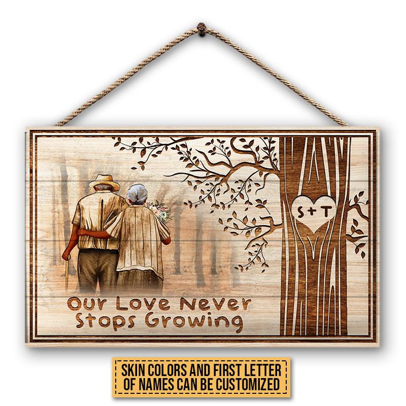 Old Couple Never Stops Growing Custom Wood Rectangle Sign, Gifts For Wedding, Anniversary, Birthday, Grandparents’ Day Gift