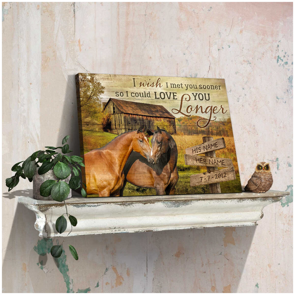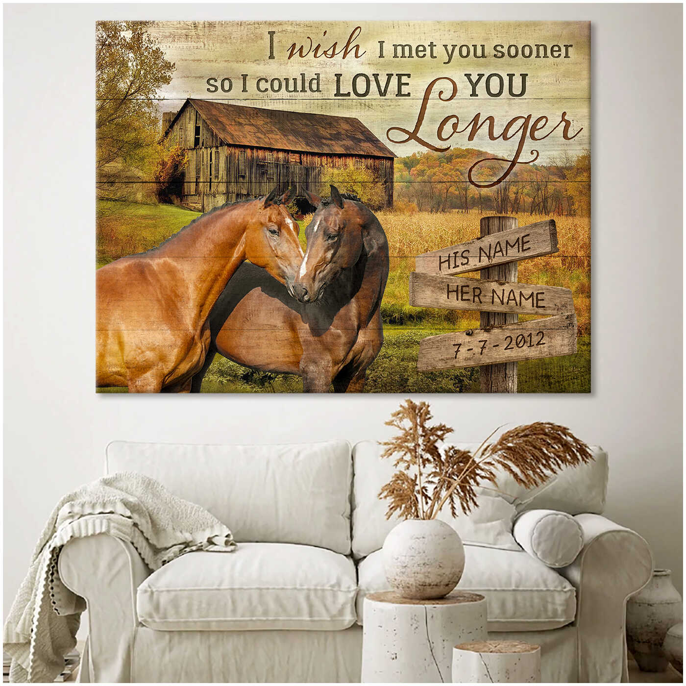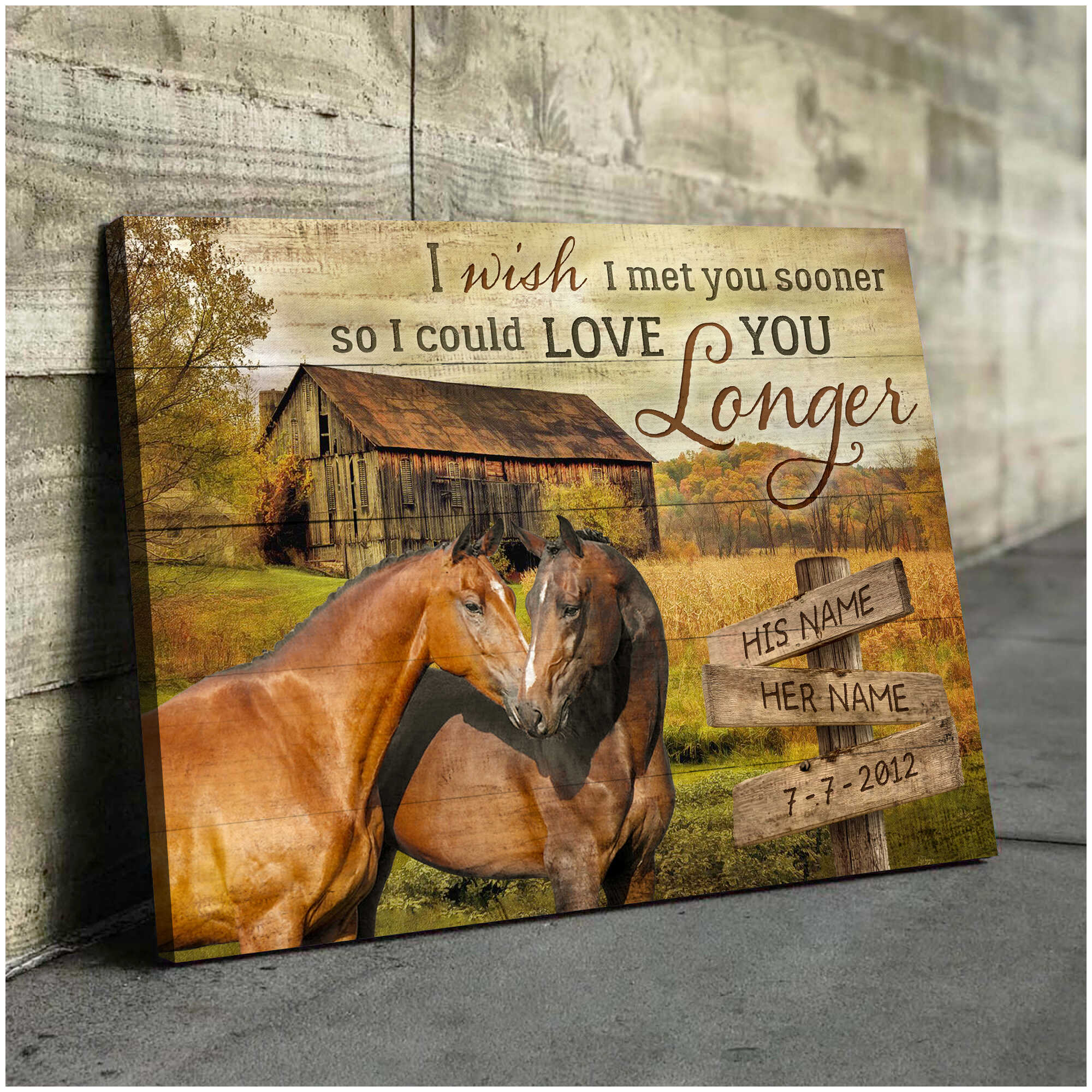 Old Farm And Couple Horse I Wish I Met You Sooner So I Could Love You Longer Custom Name And Date Farm Farmer Farmhouse Canvas Prints Wall Art Decor