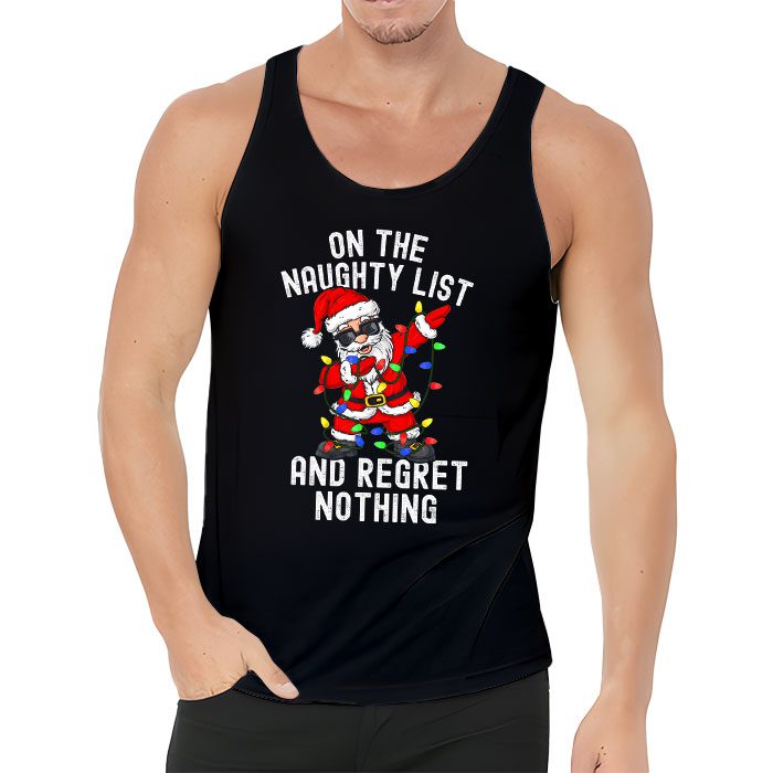 On the Naughty List and I Regret Nothing Shirt Dabbing Santa Tank Top