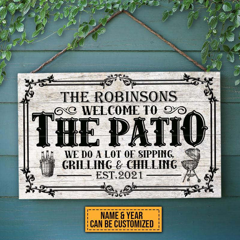 Patio Sipping Grilling Chilling Custom Wood Rectangle Sign