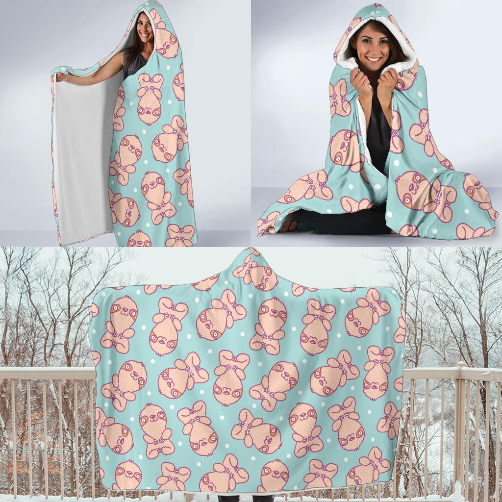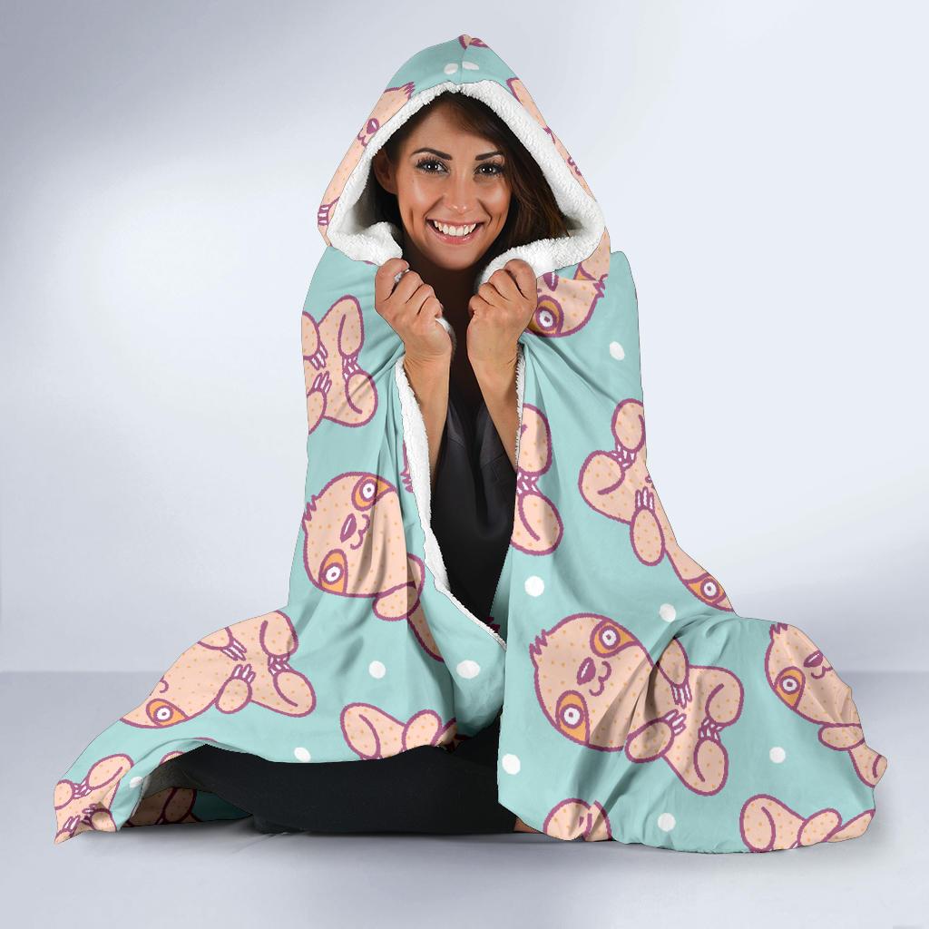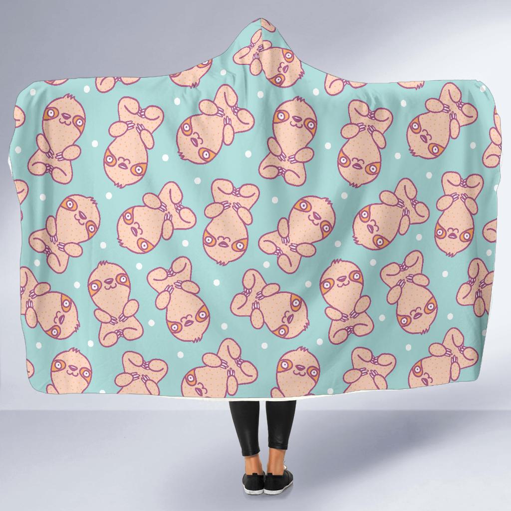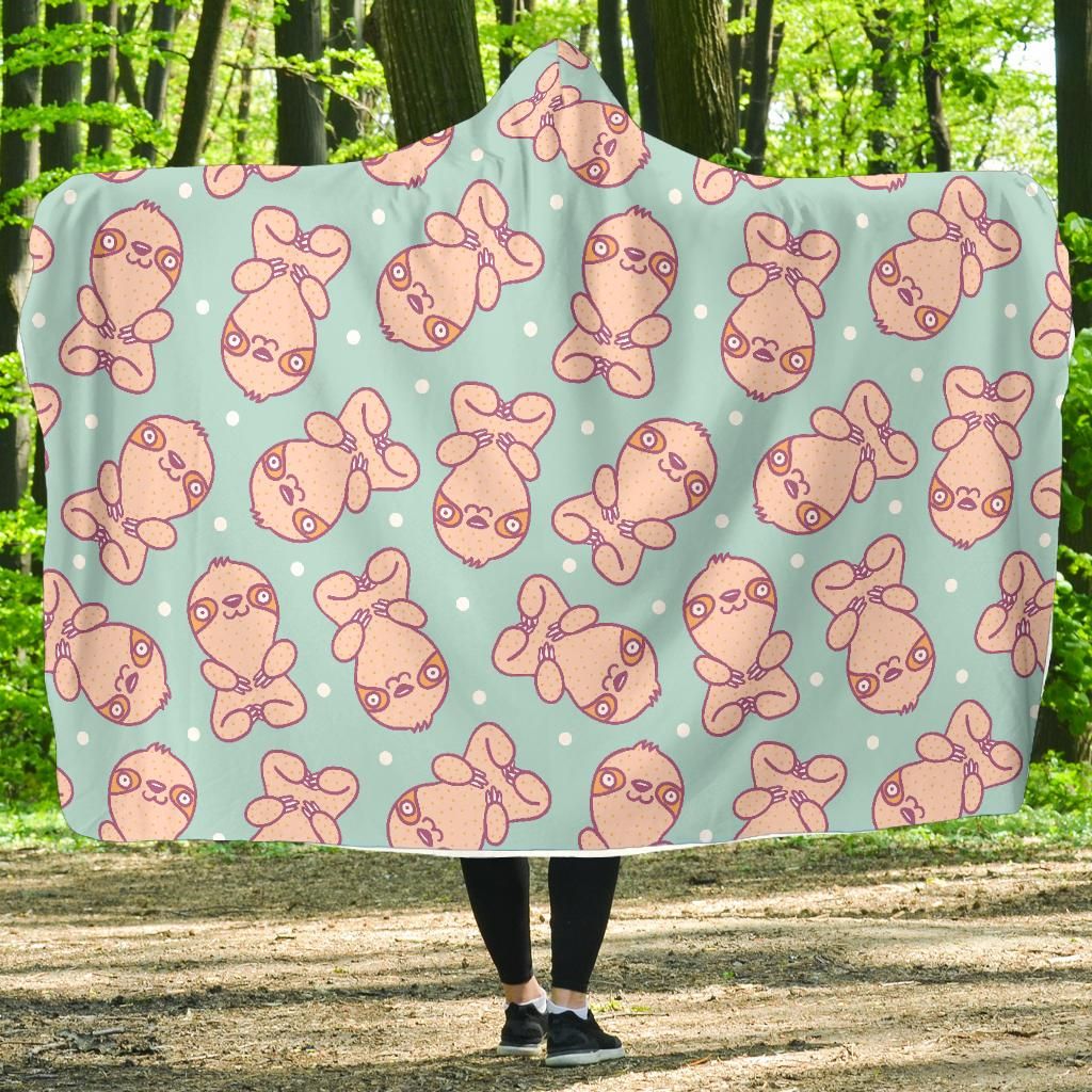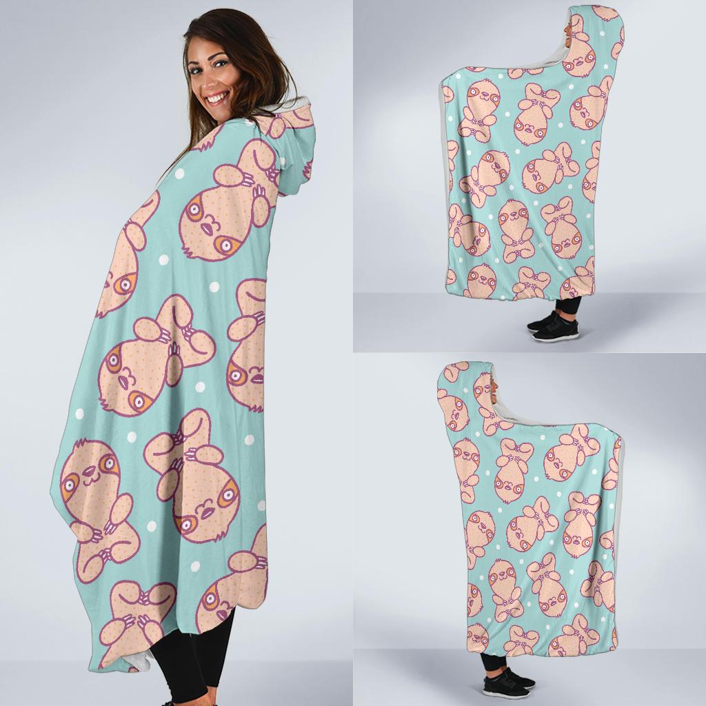 Pattern Print Sloth Hooded Blanket Cloak Blanket