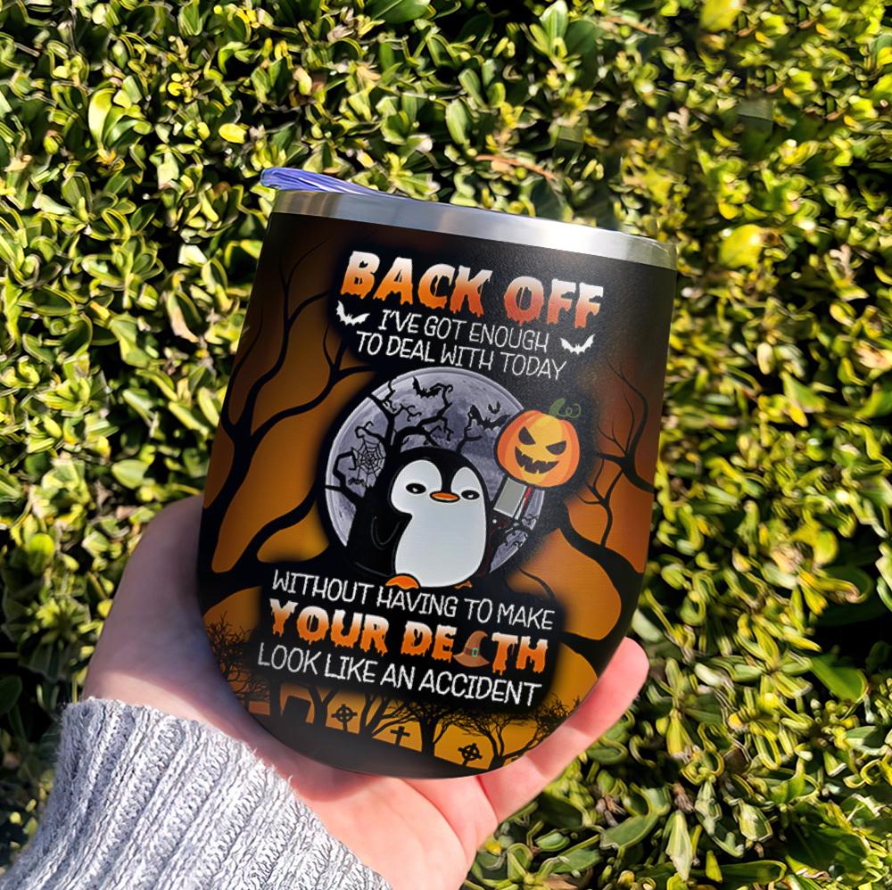 Penguin Halloween Back Off Personalized Wine Tumbler
