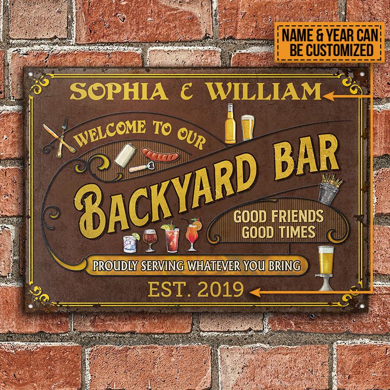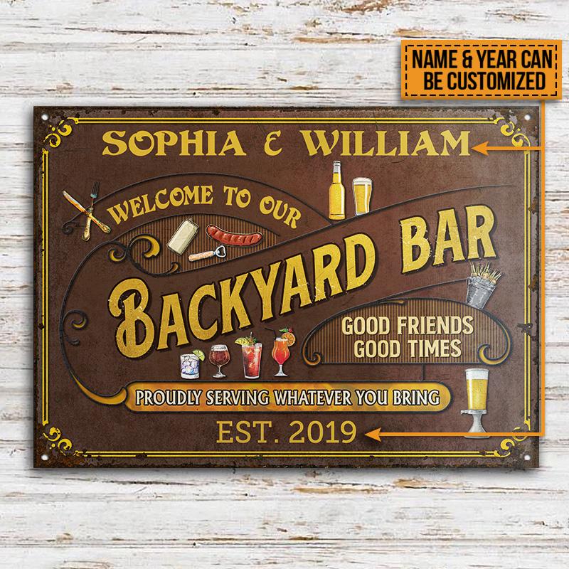 Personalized Backyard Bar Proudly Serving Customized Classic Metal Signs