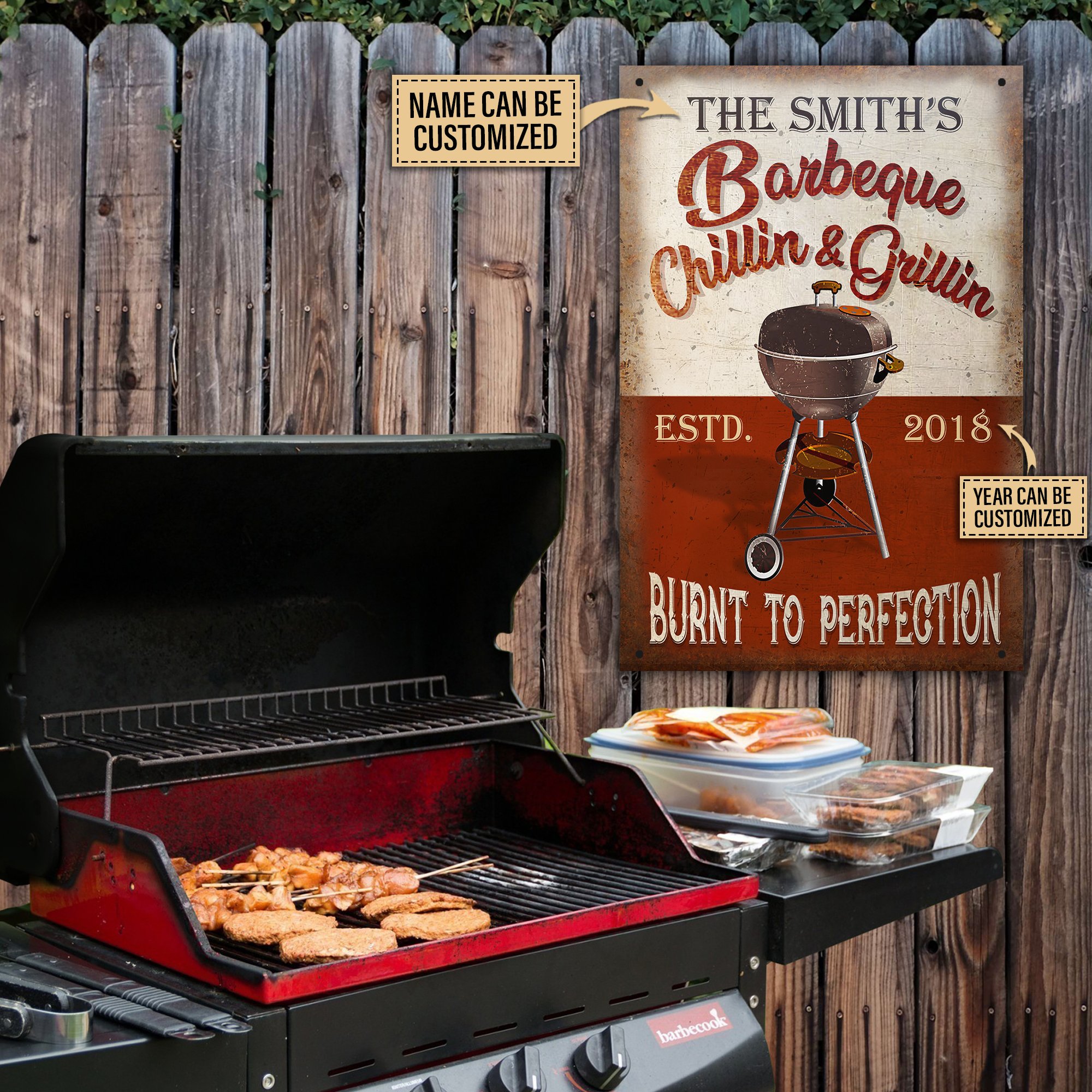 Personalized BBQ Grilling And Chilling Customized Classic Metal Signs