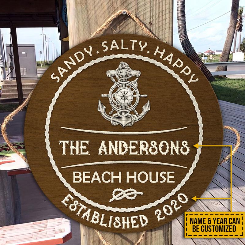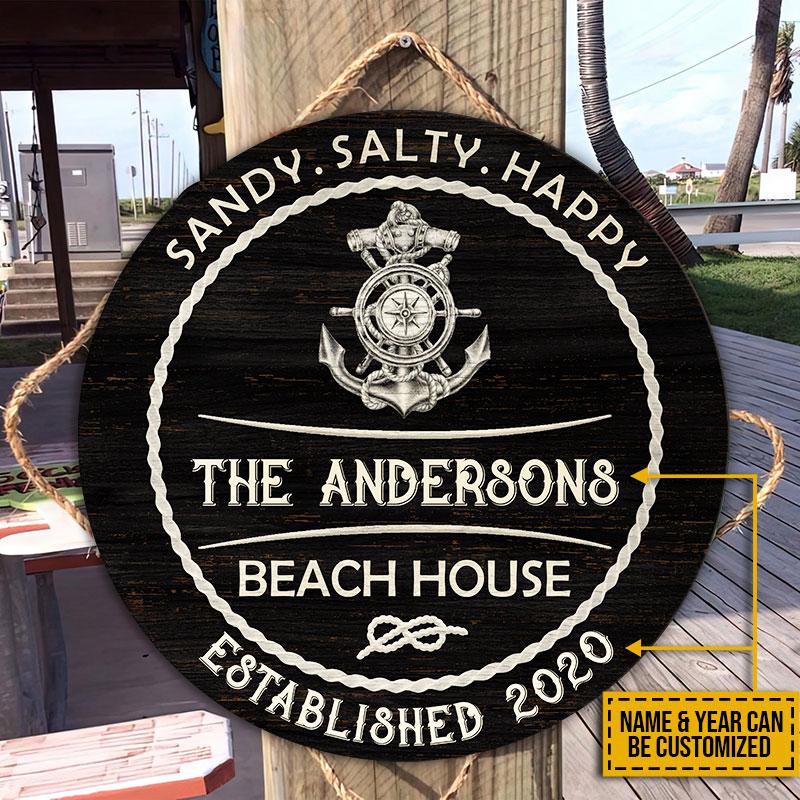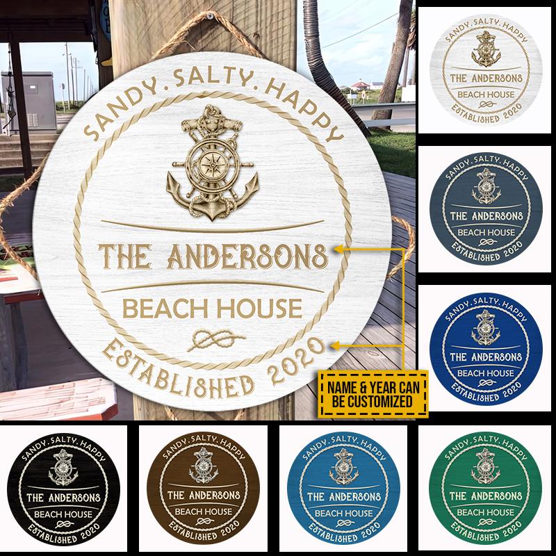 Personalized Beach House Sandy Customized Wood Circle Sign