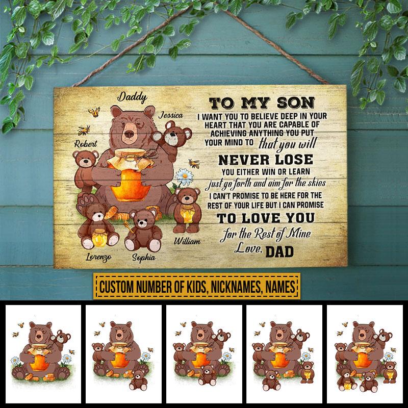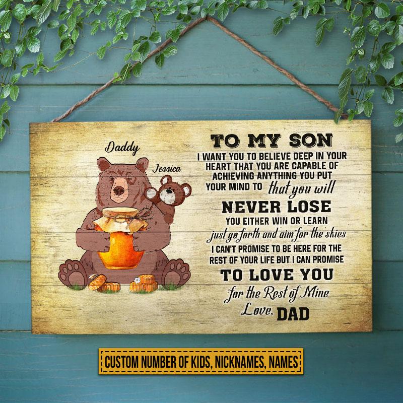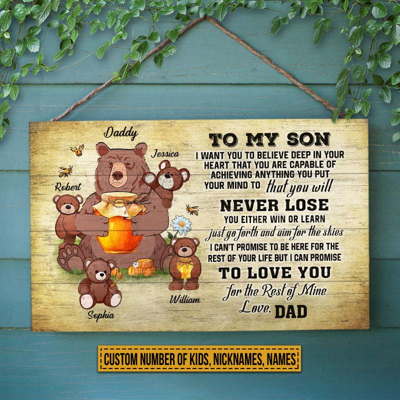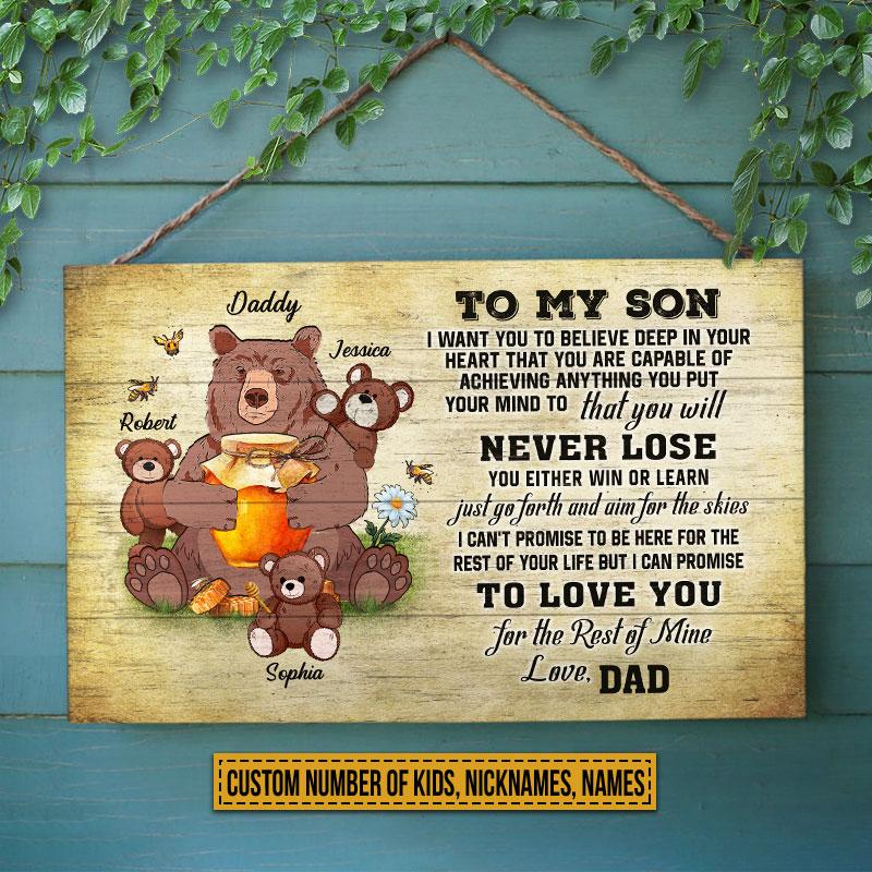 Personalized Bear Papa Dad And Child Never Lose Custom Wood Rectangle Sign