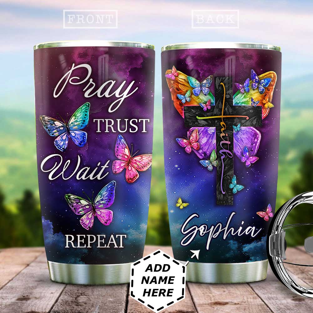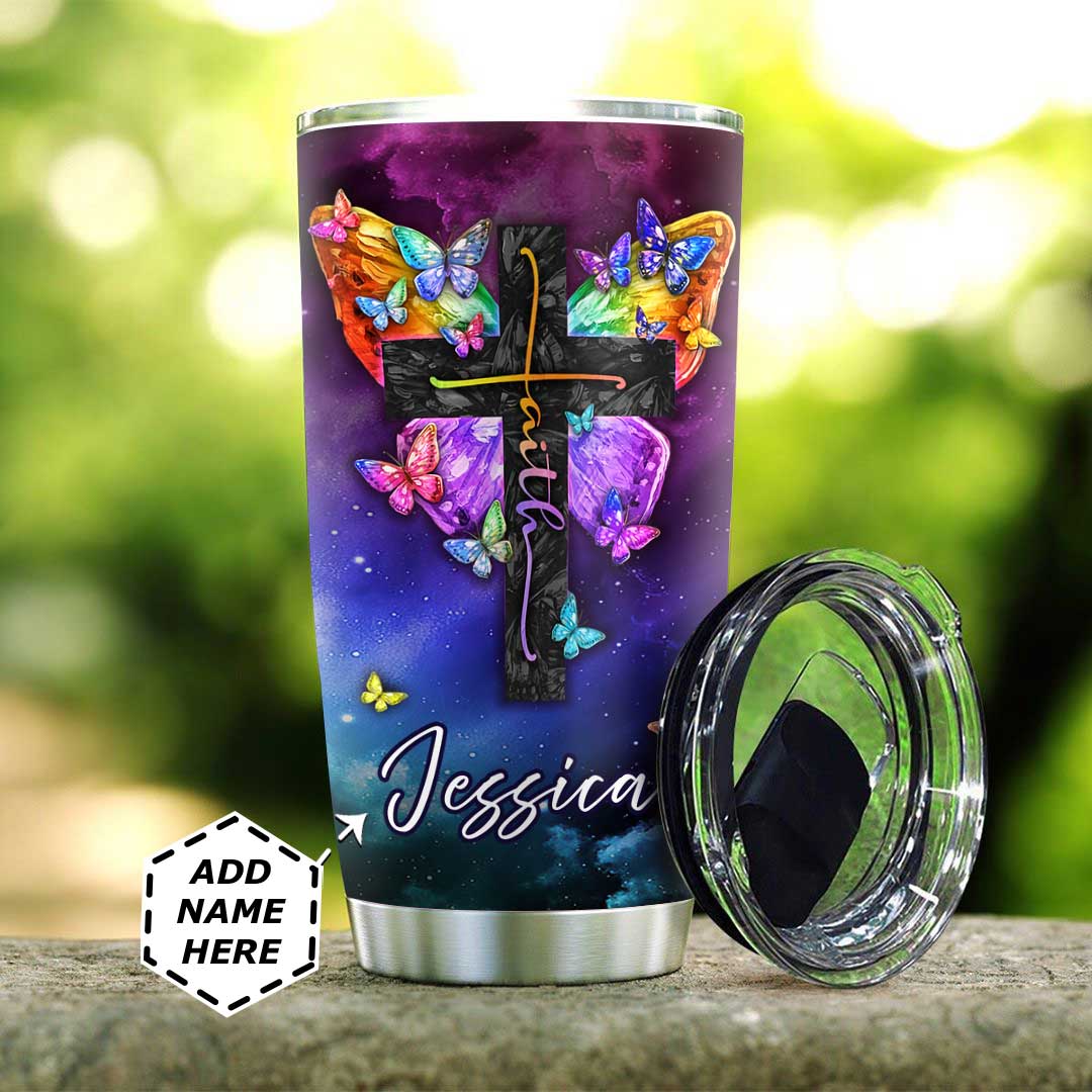 Personalized Butterfly Faith Prayer Stainless Steel Tumbler