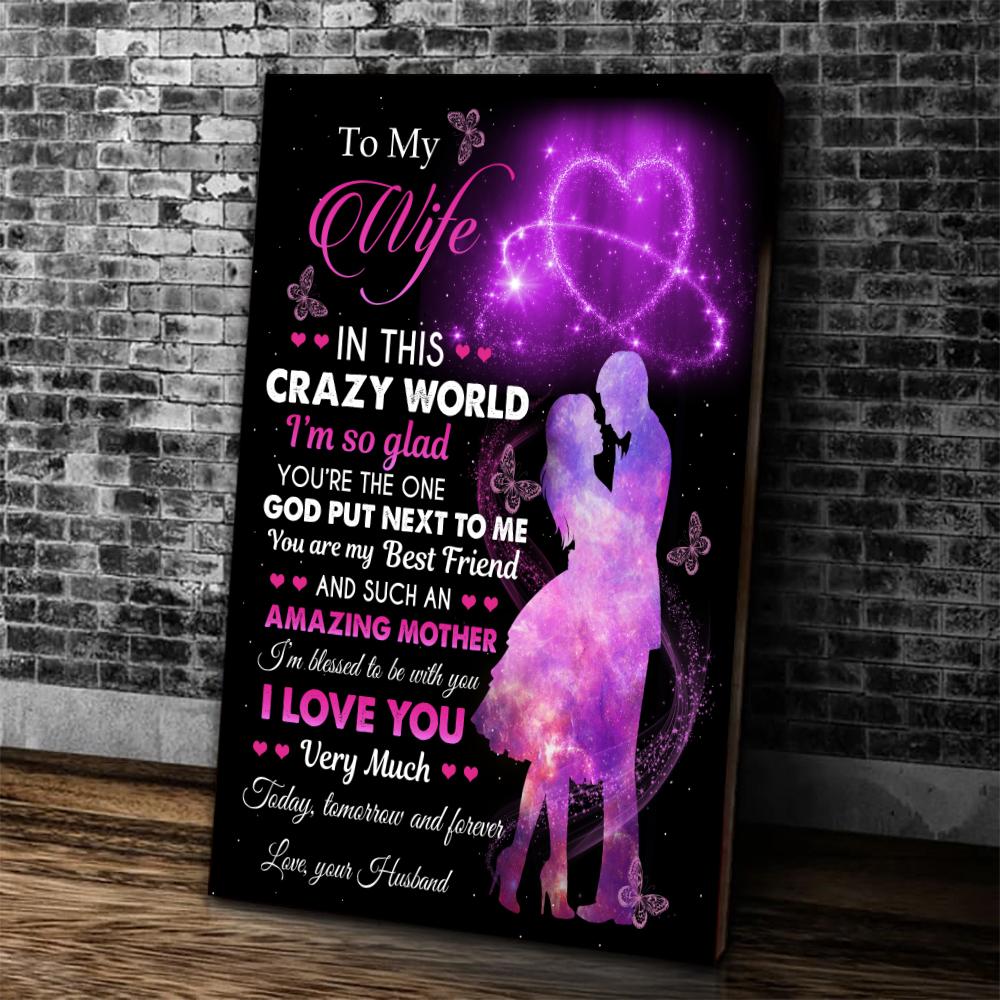 Personalized Canvas To My Wife In This Crazy World I’m So Glad, Gift For Husband Wife, Wedding Canvas