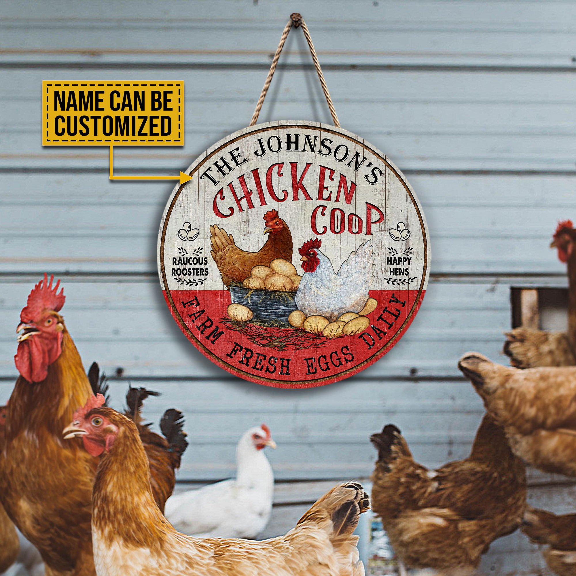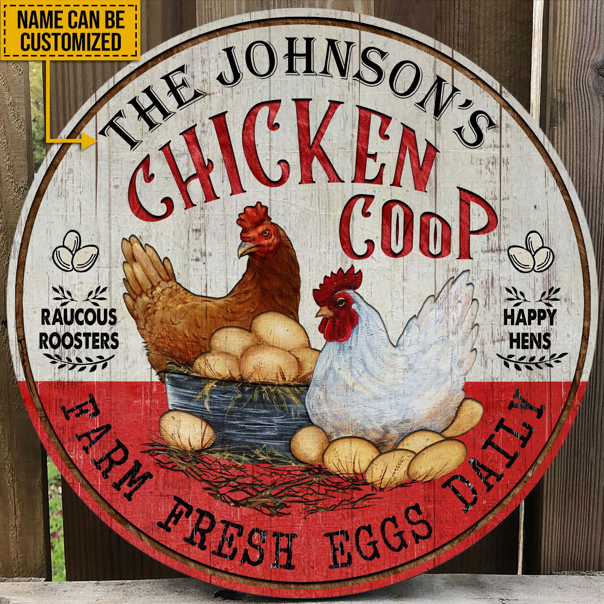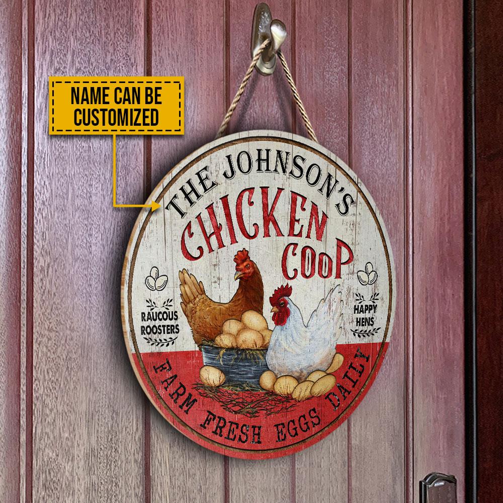 Personalized Chicken Happy Hens Fresh Eggs Daily Customized Wood Circle Sign