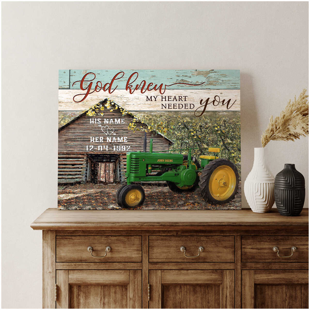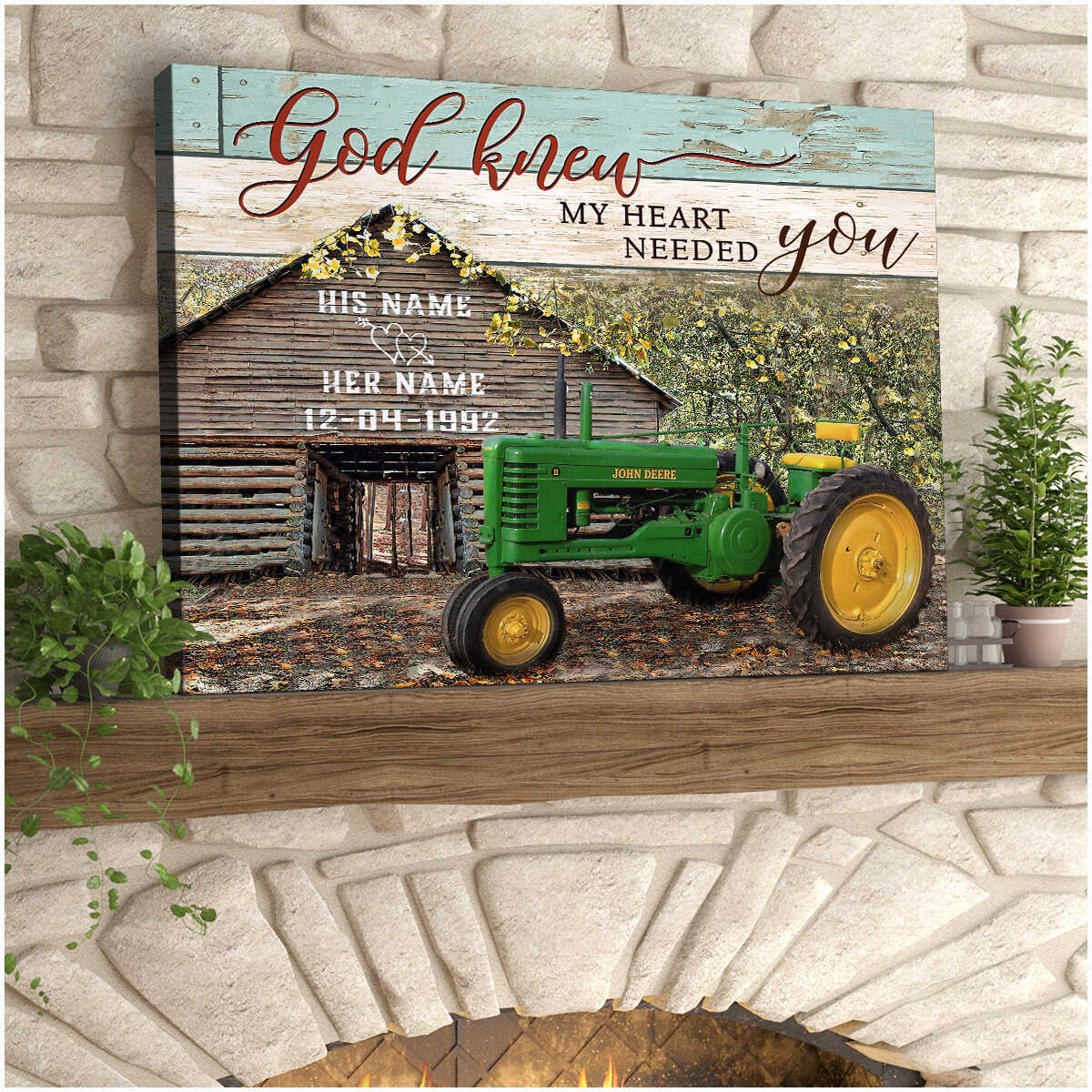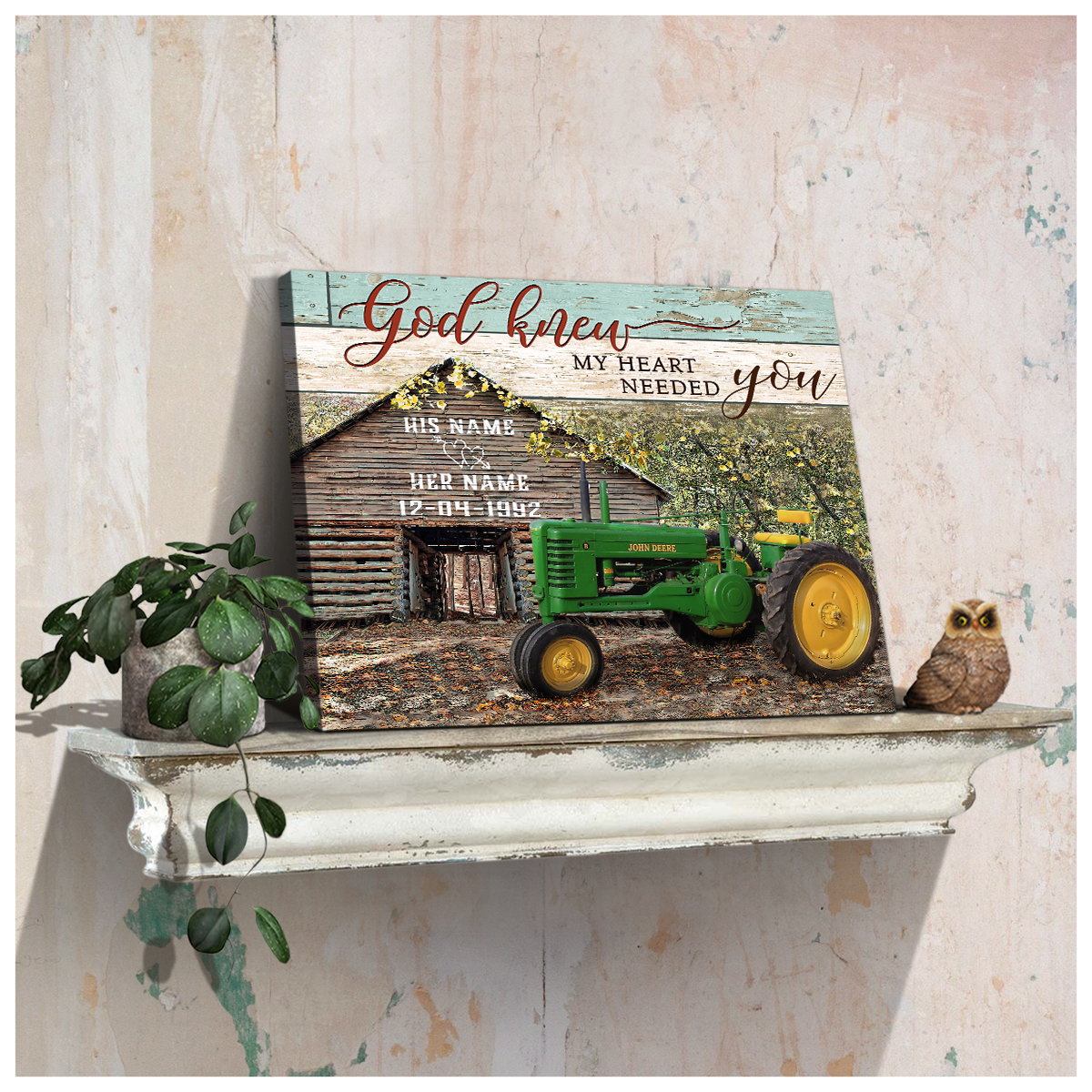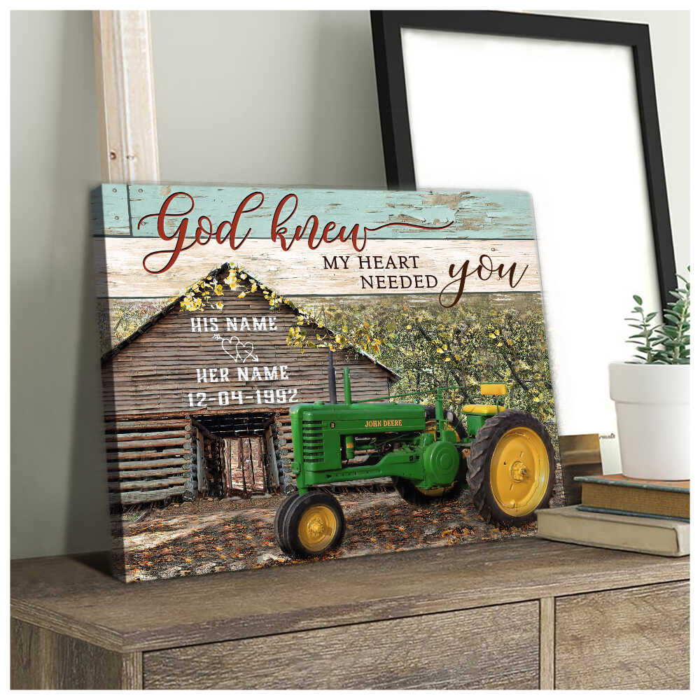 Personalized Custom Name And Date Old Barn And Tractor Canvas Prints Wall Art Decor God Knew My Heart Needed You