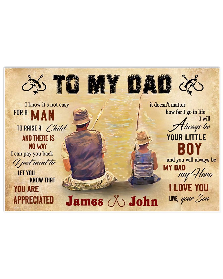 Personalized Dad Canvas, Custom Name Dad And Son, Father’s Day Gift, To My Dad I Know It’s Not Easy Love Fishing Canvas