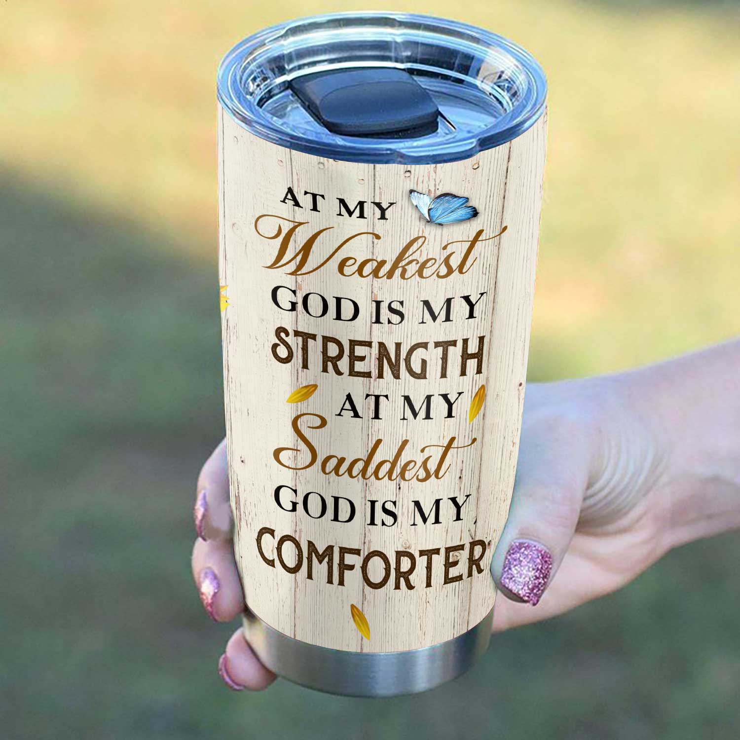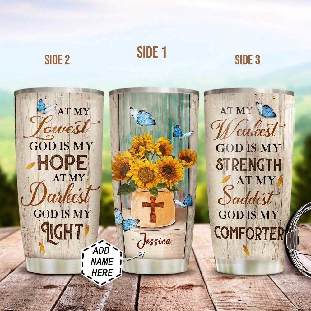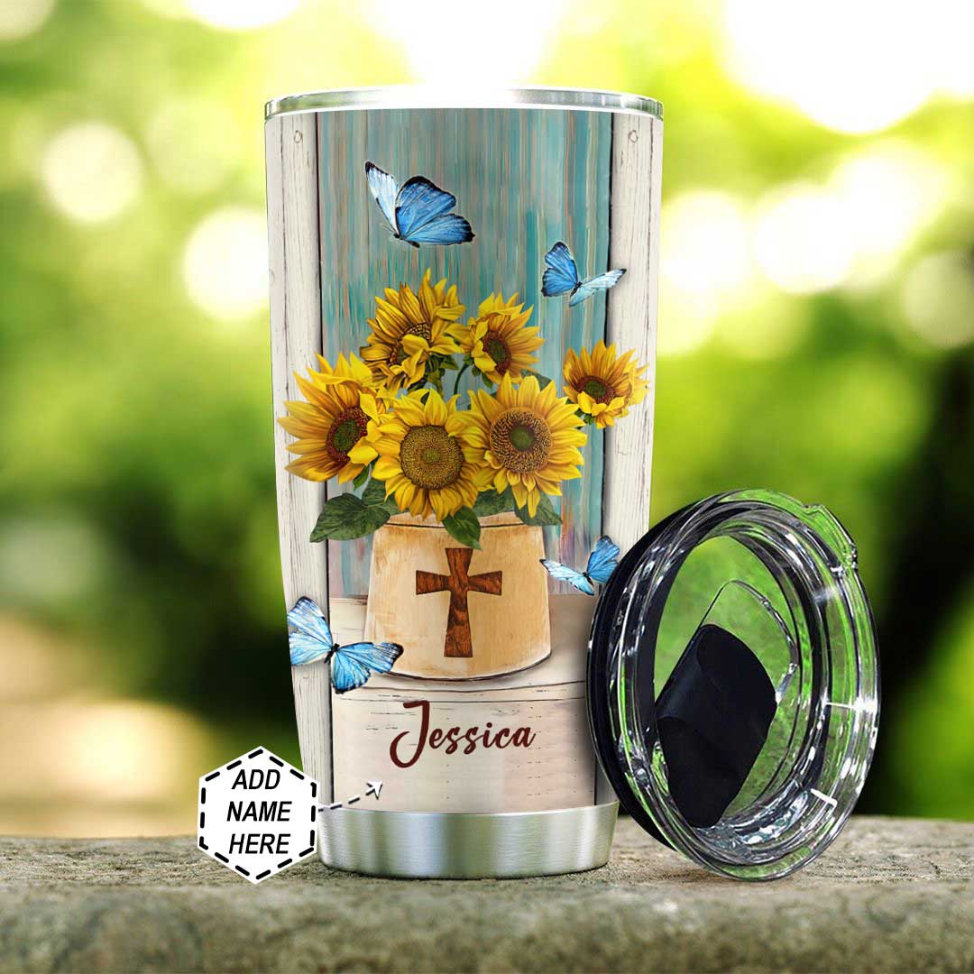 Personalized Faith Butterfly Sunflower Wooden Style Stainless Steel Tumbler