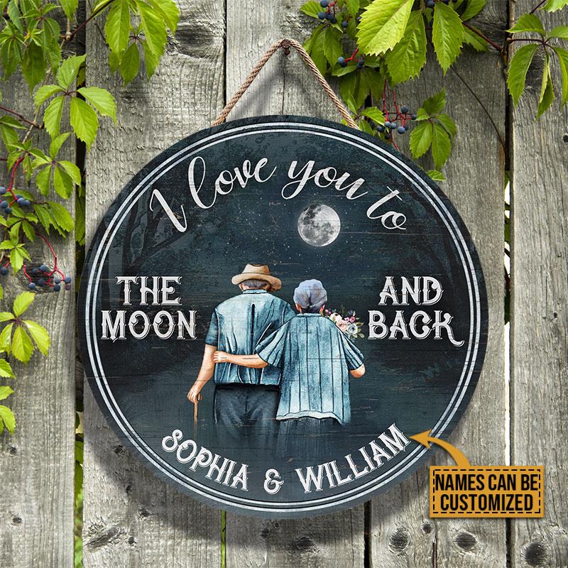 Personalized Family Old Couple Love You The Moon Customized Wood Circle Sign