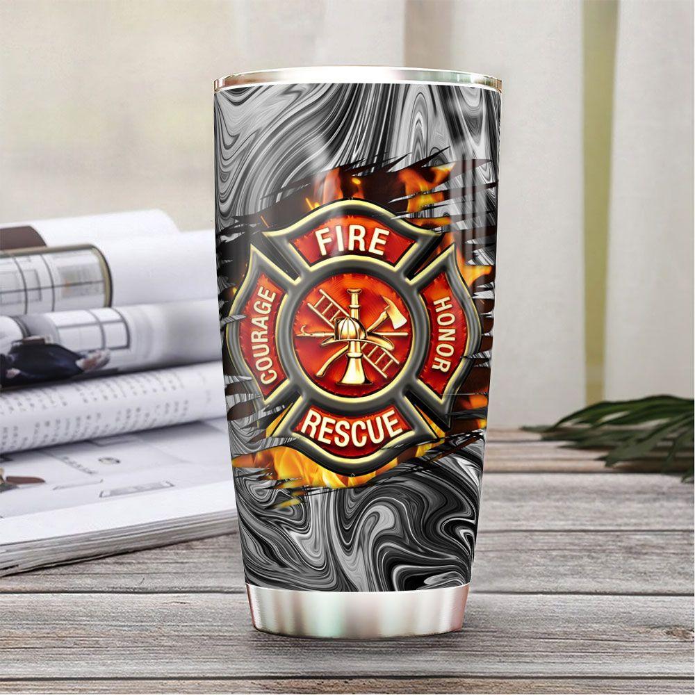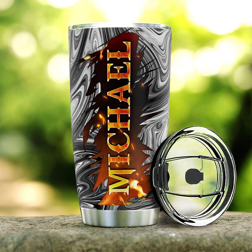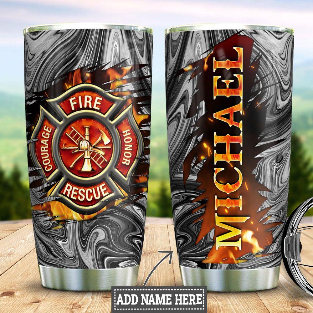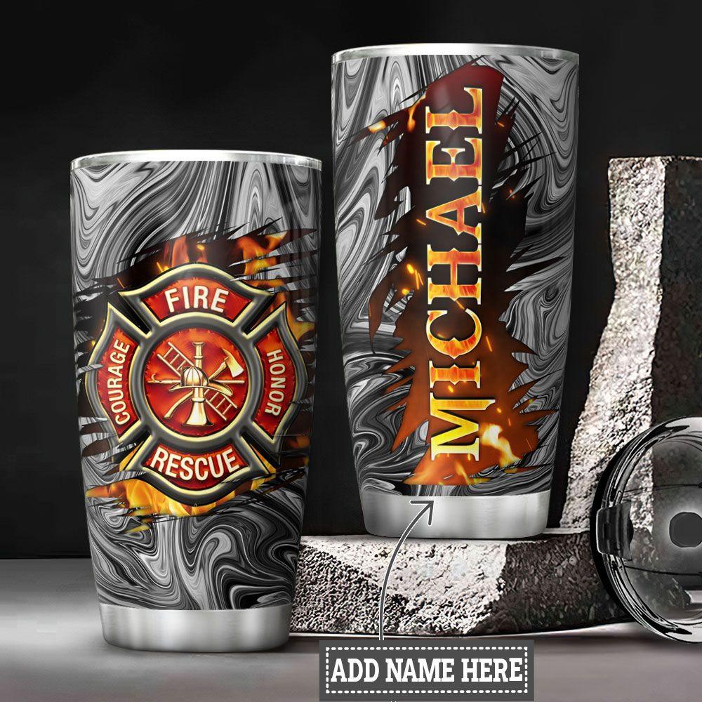 Personalized Firefighter Logo In Fire Stainless Steel Tumbler