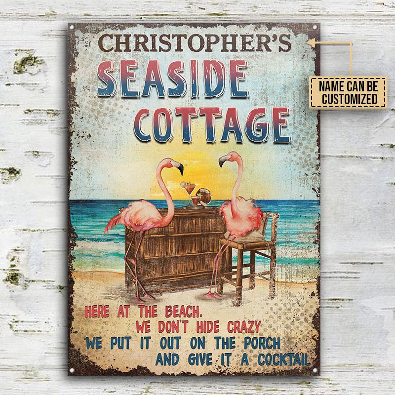 Personalized Flamingo Seaside Cottage Customized Classic Metal Signs