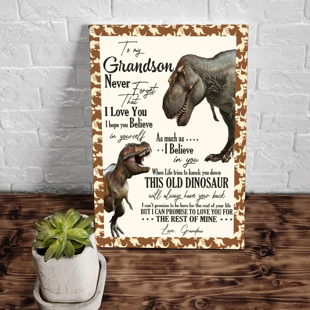 Personalized Grandson Canvas, Gift For Grandson, To My Grandson Never Forget That I Love You Dinosaur Canvas