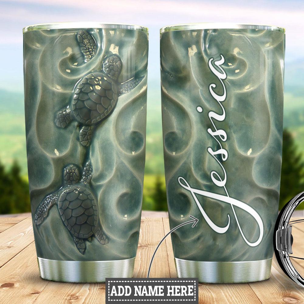 Personalized Green Turtle Ceramic Style Stainless Steel Tumbler