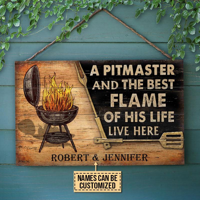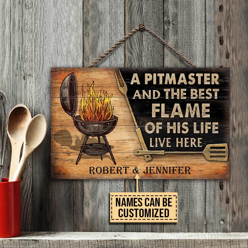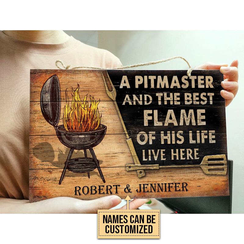 Personalized Grilling Couple Pitmaster Customized Wood Rectangle Sign