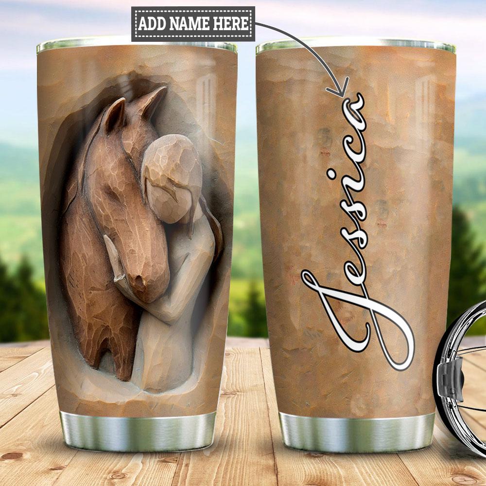 Personalized Horse Girl Wood Style Stainless Steel Tumbler