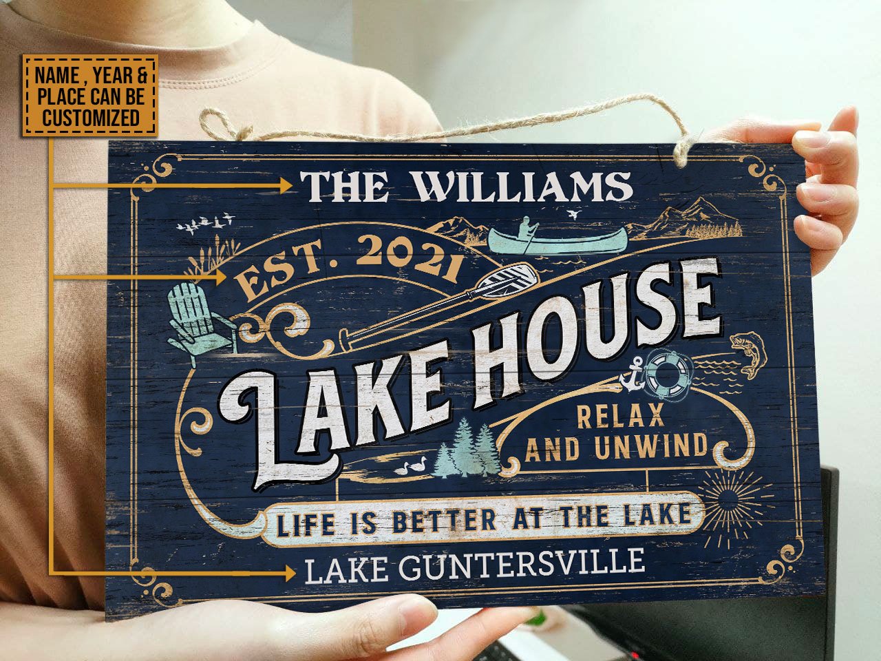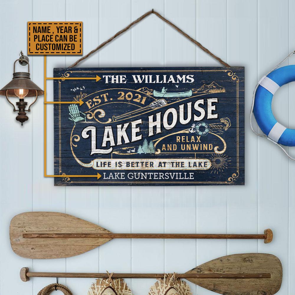 Personalized Lake House Life Better Customized Wood Rectangle Sign