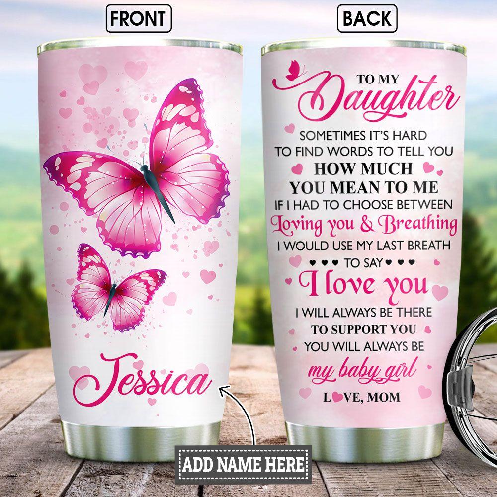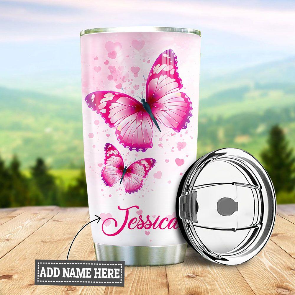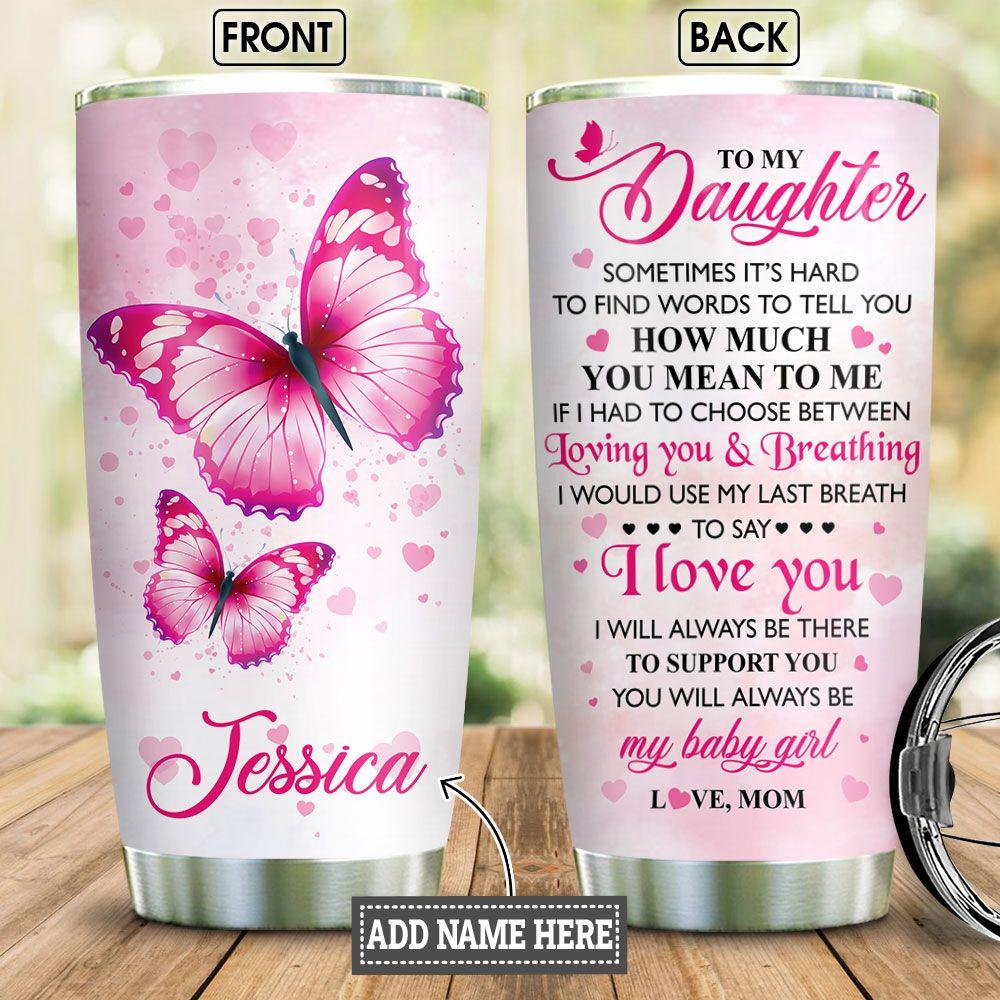 Personalized Pink Butterfly Mom To Daughter Stainless Steel Tumbler