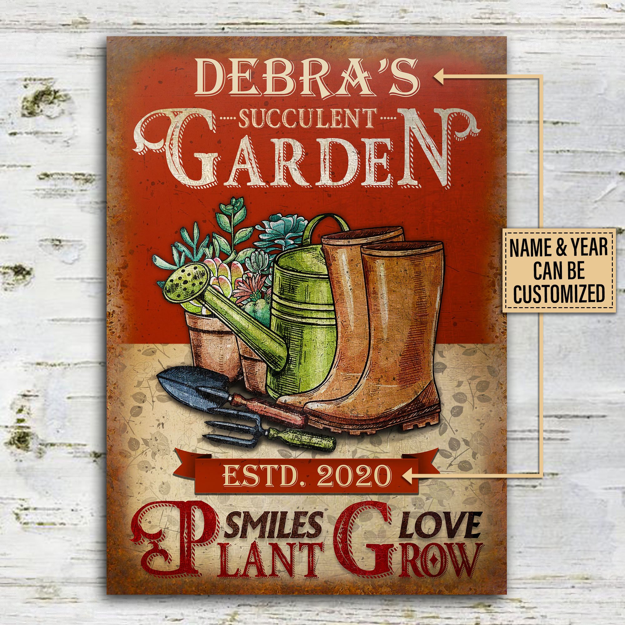 Personalized Succulent Plant Smiles Grow Love Red Customized Classic Metal Signs