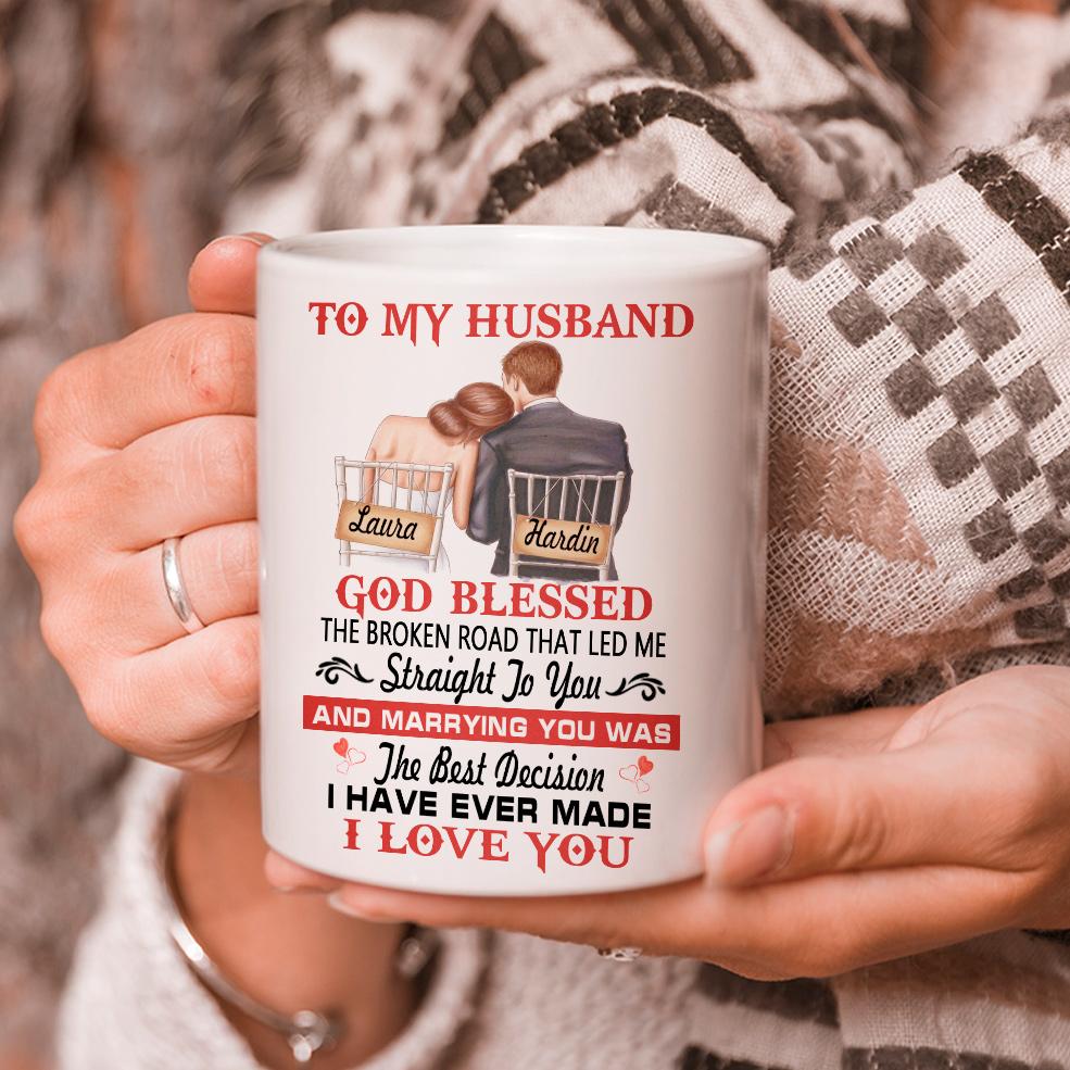 Personalized To My Husband God Blessed The Broken Road That Led Me Straight To You Mug