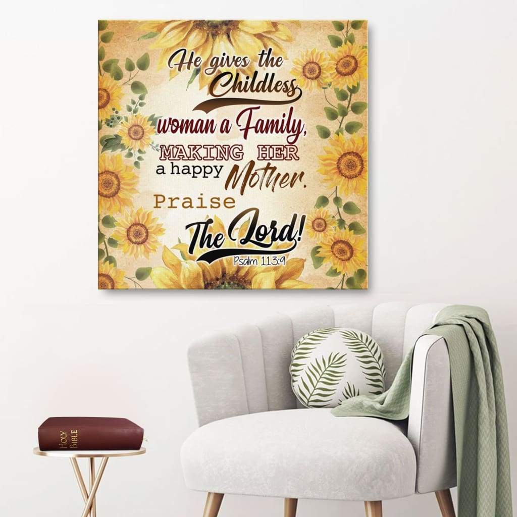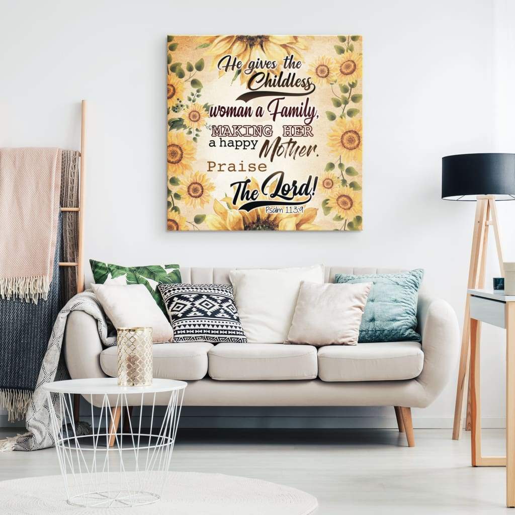 Psalm 113:9 He Gives The Childless Woman A Family Canvas Wall Art