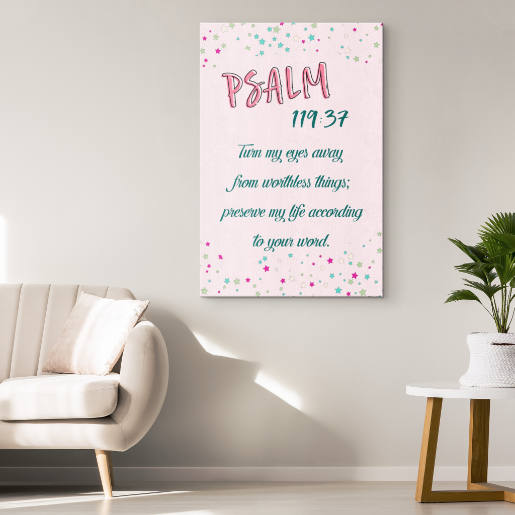 Psalm 119:37 Turn My Eyes Away From Worthless Things Canvas Wall Art