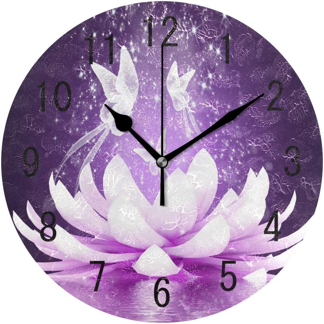 Purple Lotus Flower Butterfly Printed Wall Clock