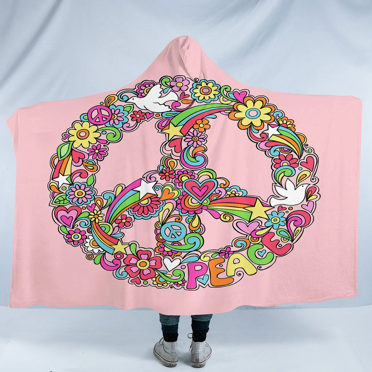 Rainbow Peace SW0445 Hooded Blanket Cloak Blanket
