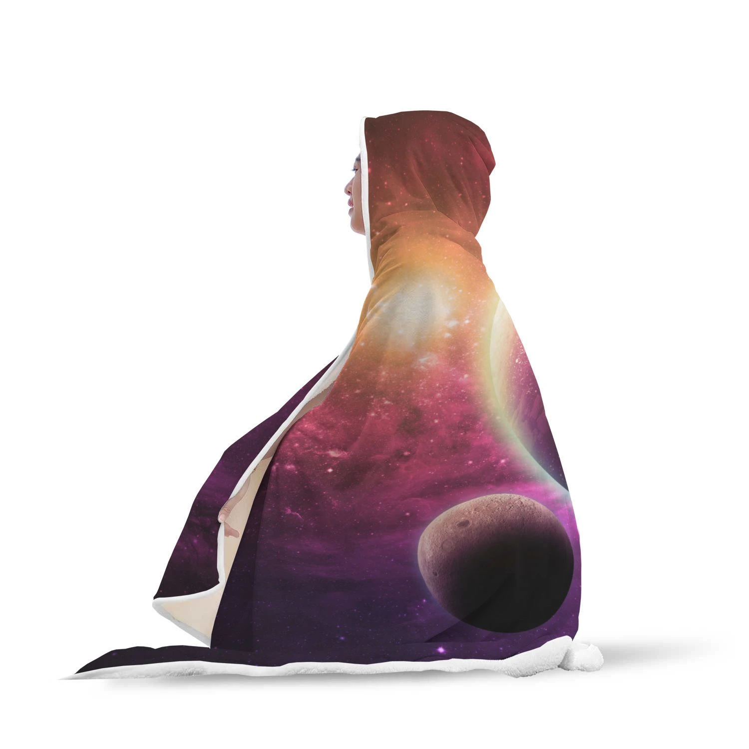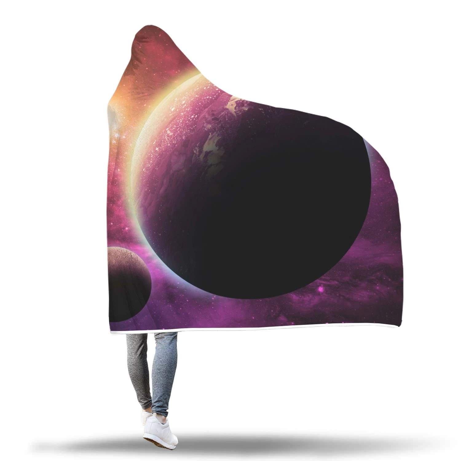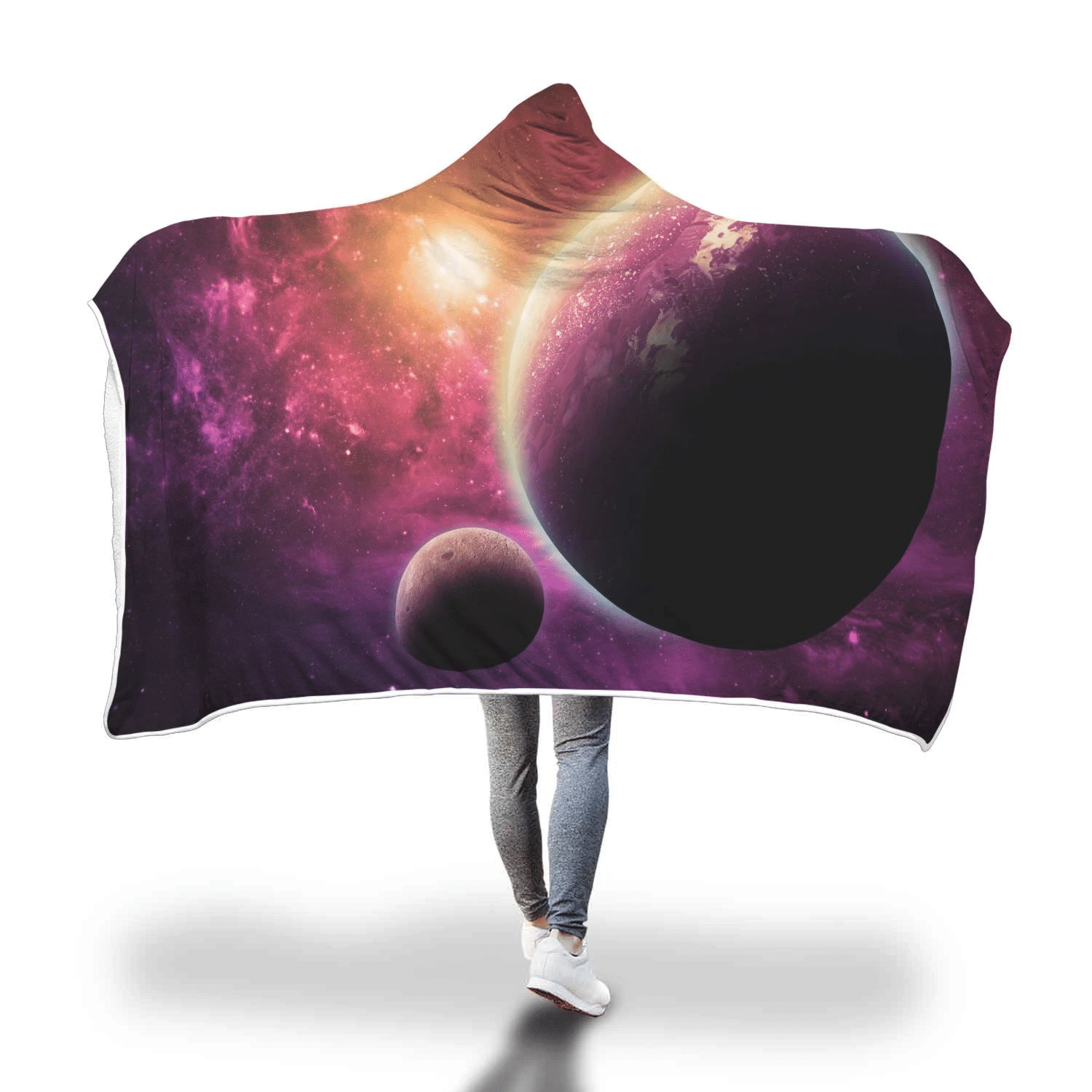 Red Galaxy Space Moon Earth Print Hooded Blanket Cloak Blanket